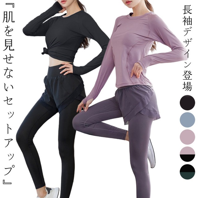 【メール便】ヨガウェア レディース 長袖 上下セットアップ ヨガトップス/yoga278