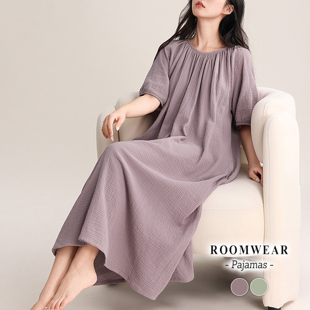 【メール便】「夏のお風呂上りを涼しく!」湯上りワンピース ガーゼ ワンピース ルームウェア レディース/tops2199