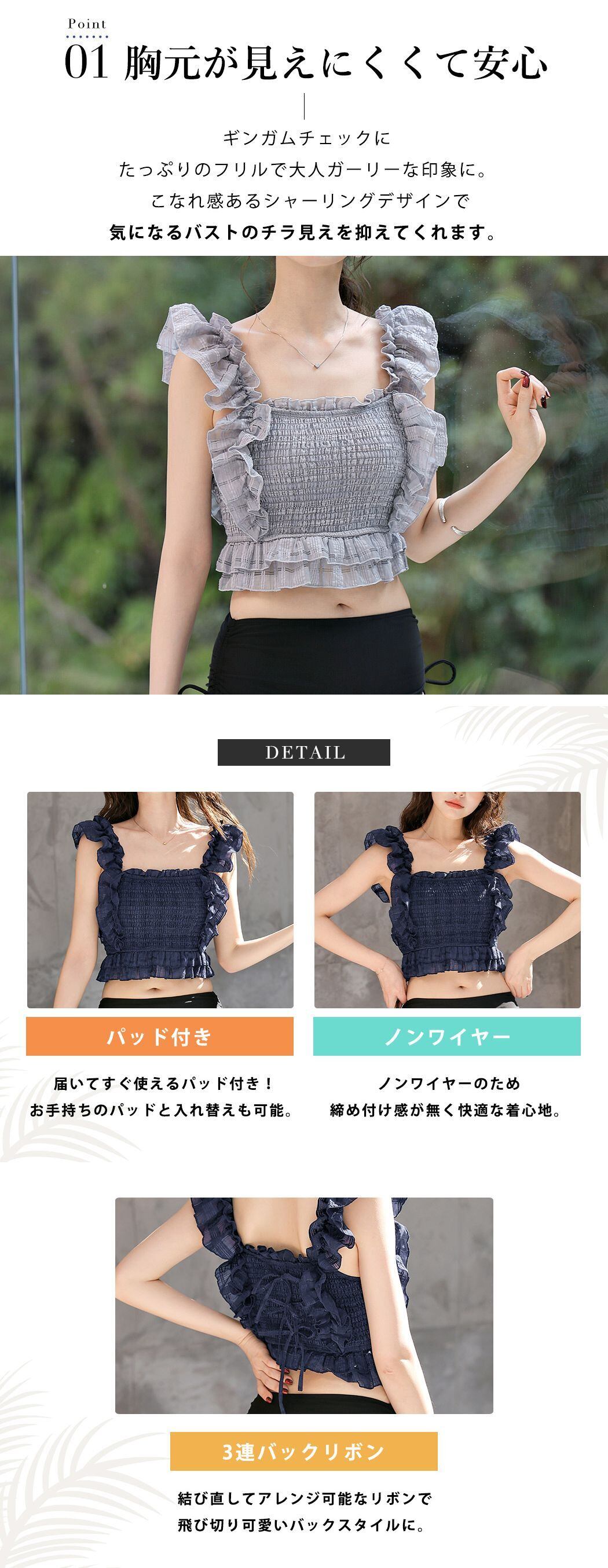 こなれ感あるシャーリングデザインで気になるバストのチラ見えを抑えてくれます。