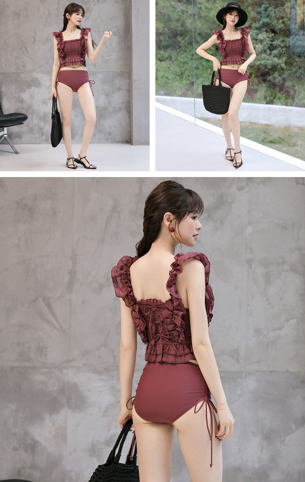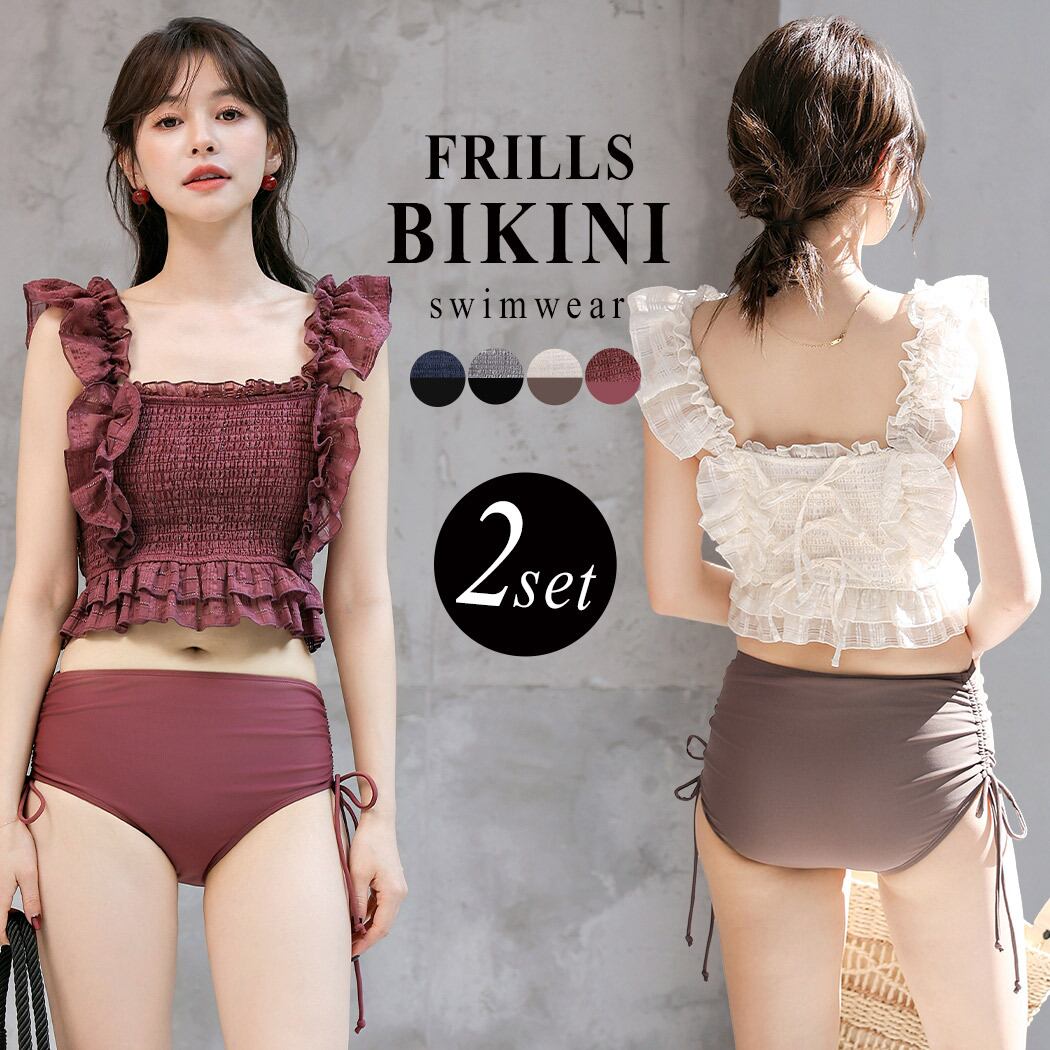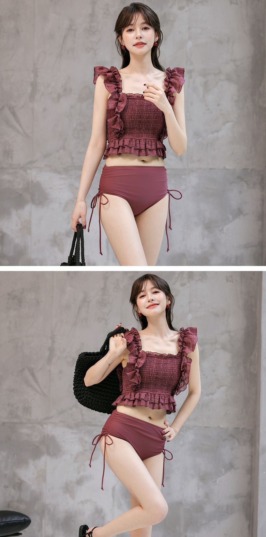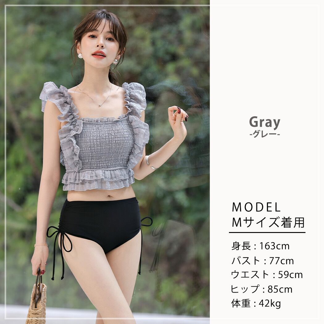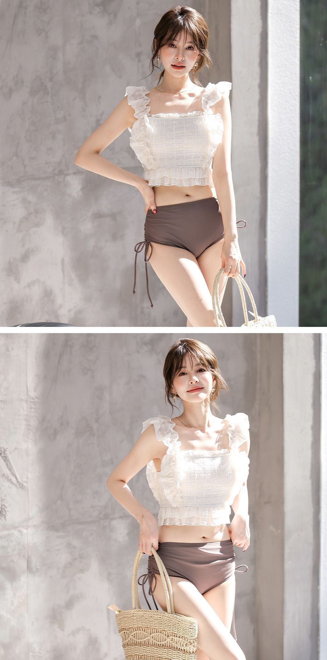シャーリングとリボンで気になる下っ腹と太ももの付け根をさり気なくカバー。
