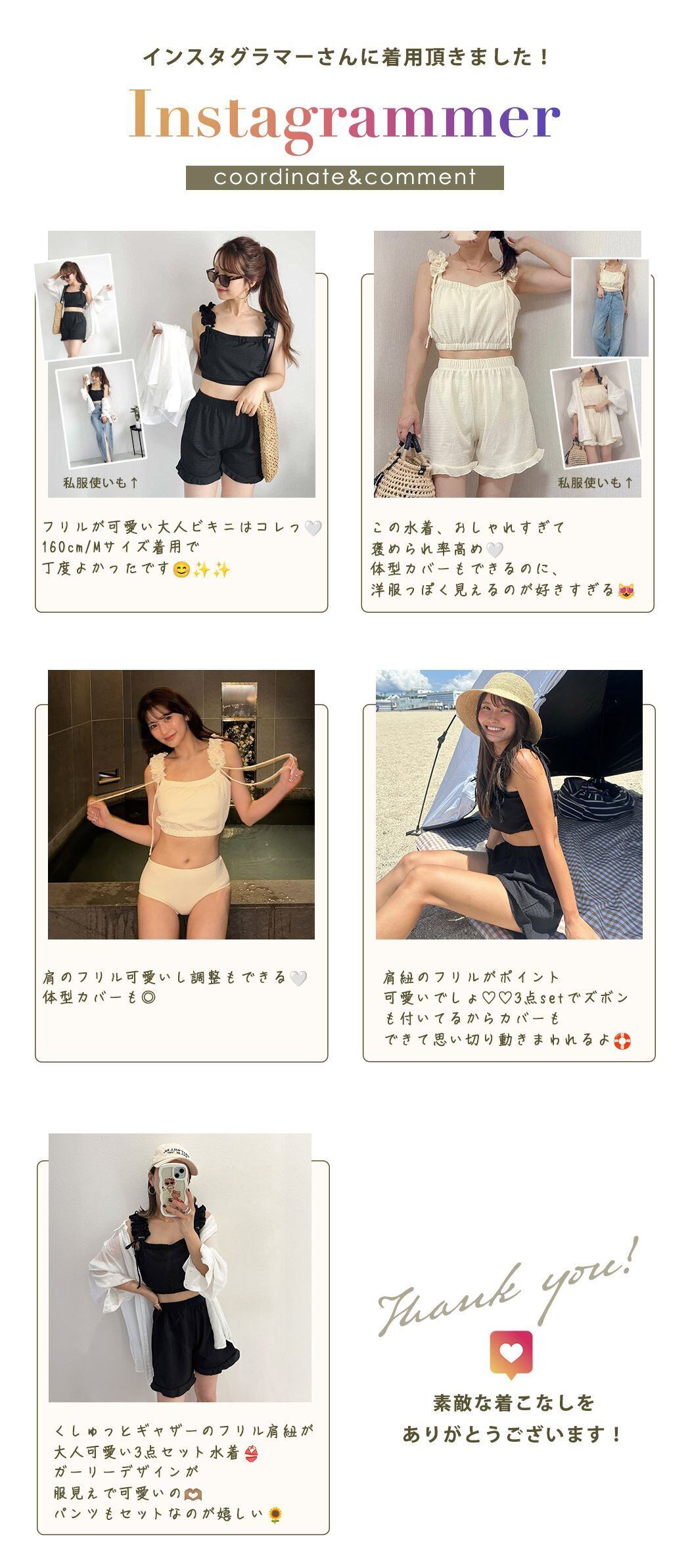 フリル肩紐が目を引く大人ガーリーなデザイン