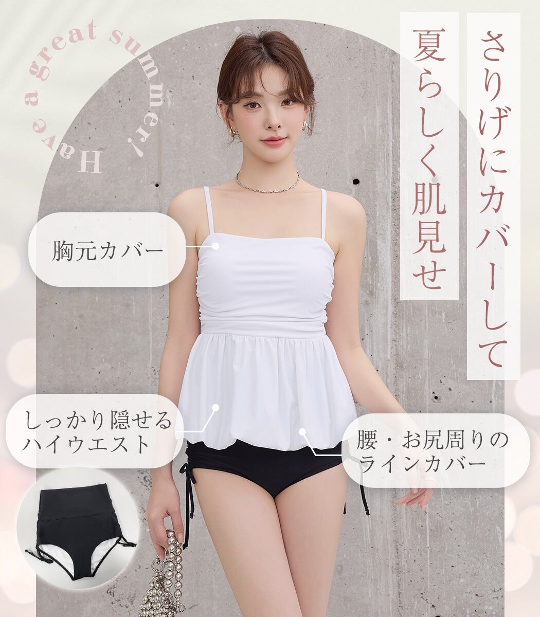 サイドリボンとギャザーでシンプルになりすぎないのが◎