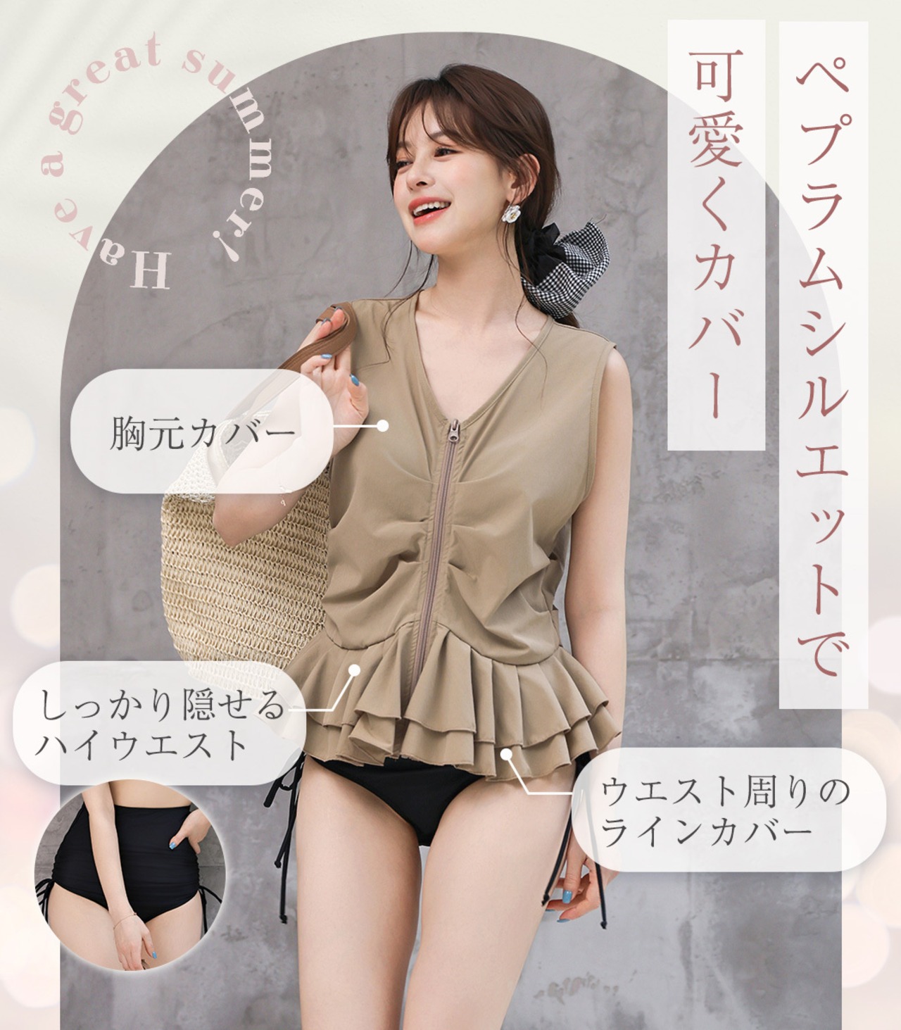 レディース 水着 ジッパーフレアベスト