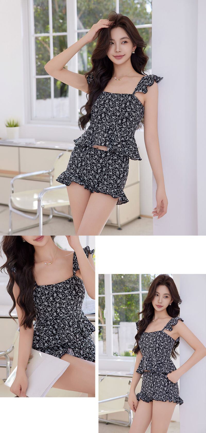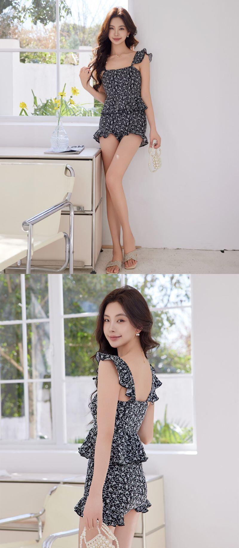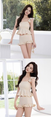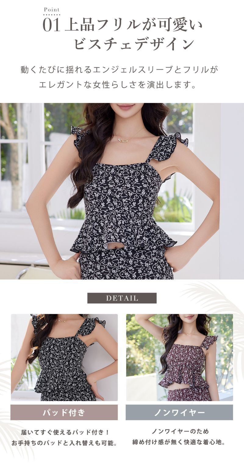 動くたびに揺れるエンジェルスリーブとフリルがエレガントな女性らしさを演出します。