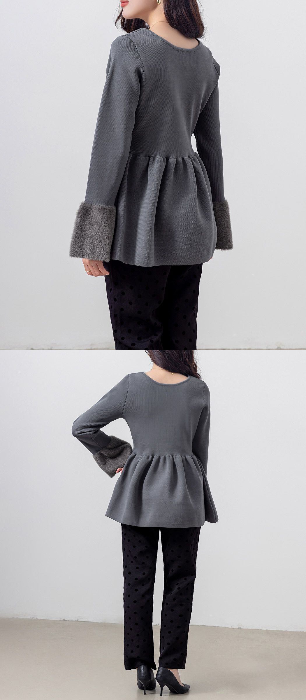 ウエストから広がるシルエットが女性らしさを引き立ててくれるペプラムデザイン。