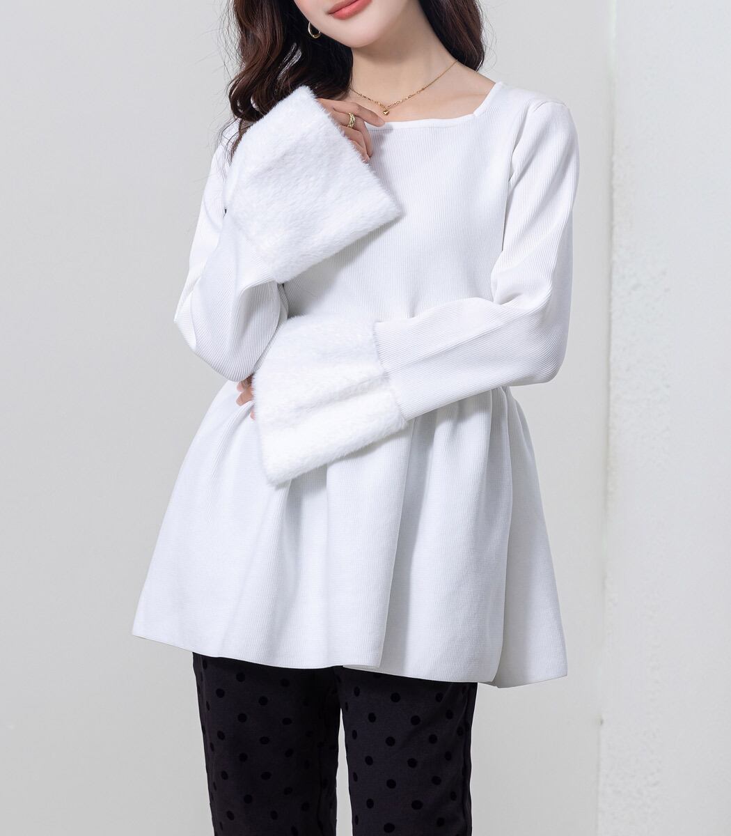 サラリとした手触りのリブニットに、袖先部分は暖かみのあるシャギーニット