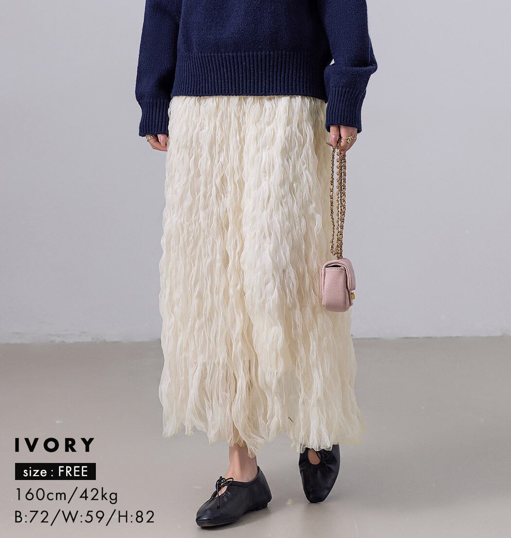 くしゅっとニュアンス感あるシースルーが目を惹くロングスカート。