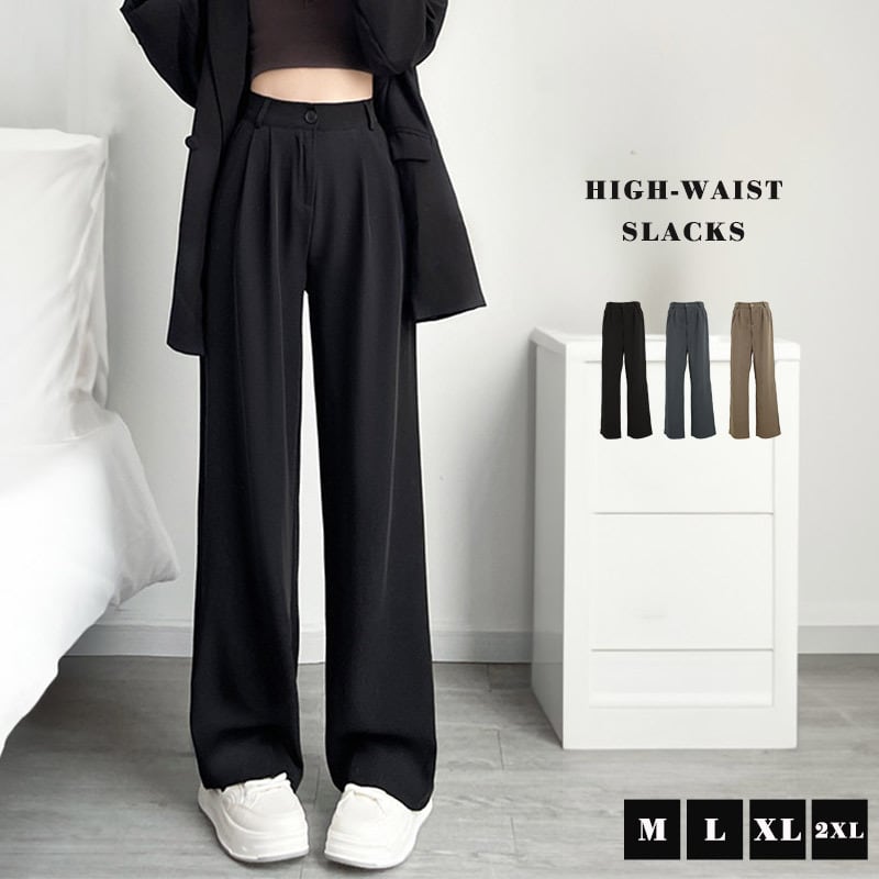 レディース ハイウエスト ワイドパンツ