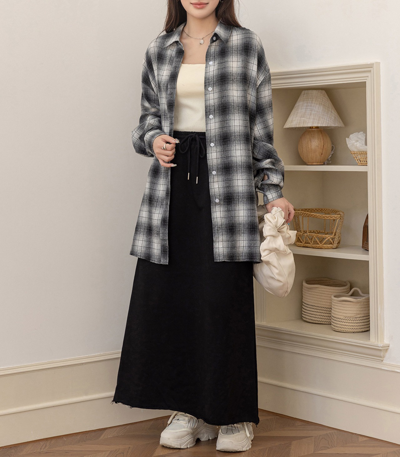 裾はあえて切りっぱなしデザインにすることで抜け感をプラス。