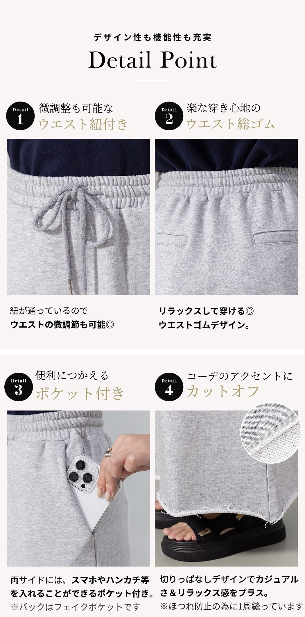 ウエストゴムデザイン。
