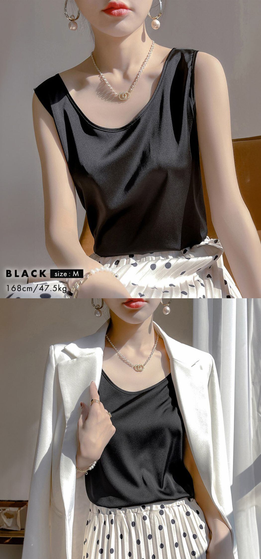 サテン風タンクトップス