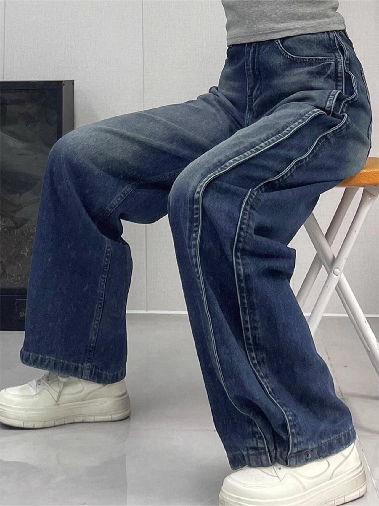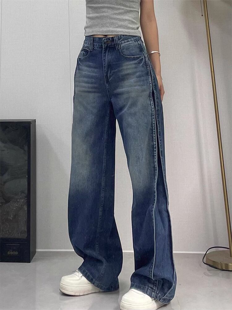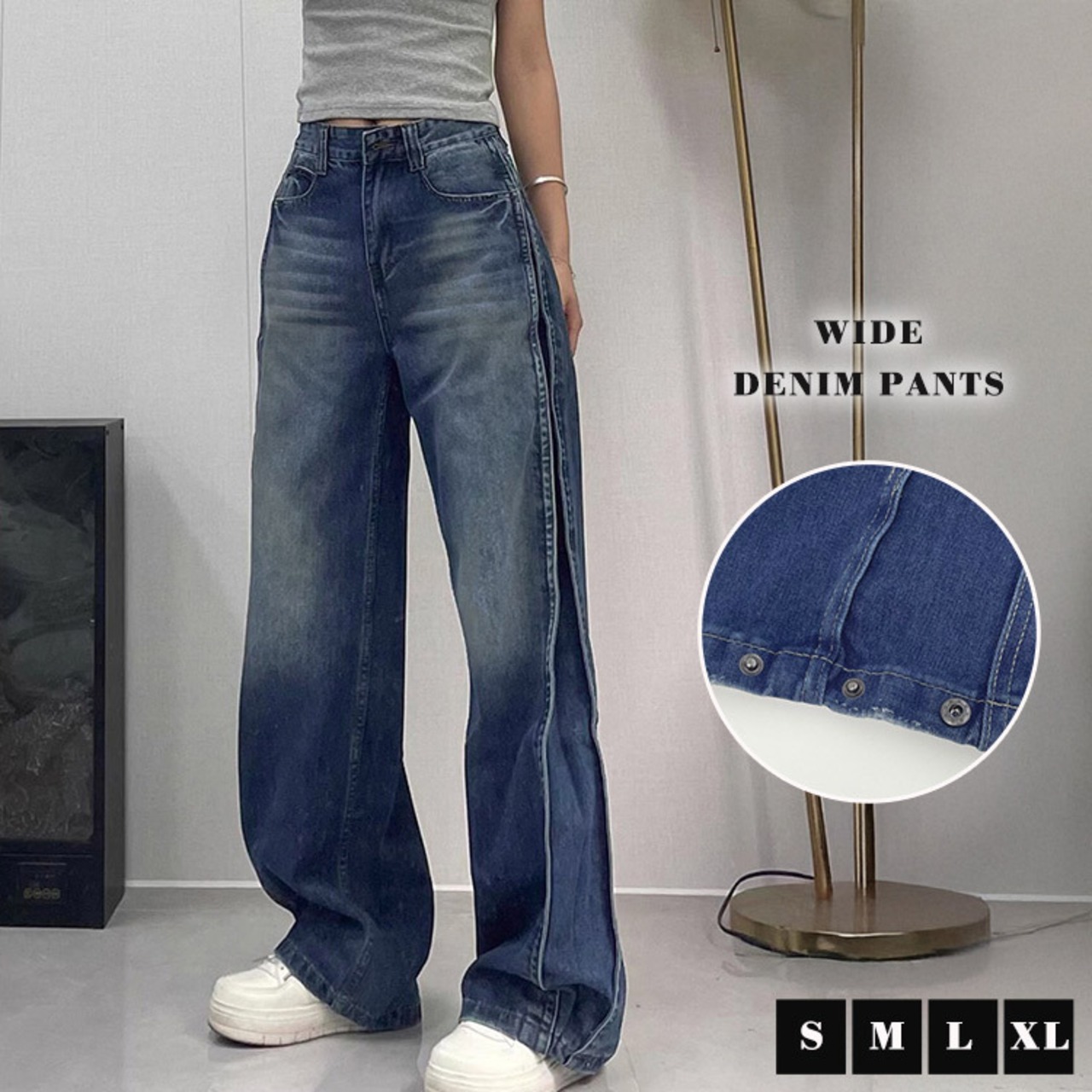 留めればバレルレッグ風のゆるいカーブシルエットになる2way仕様です。