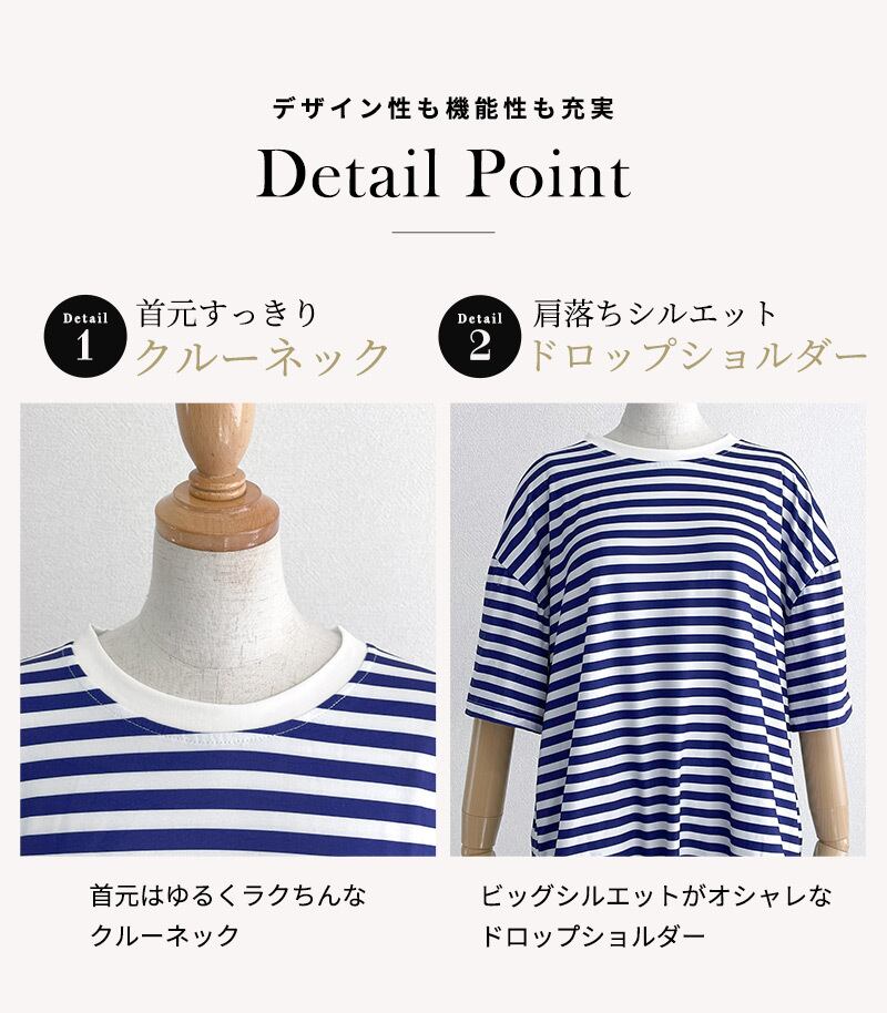 カジュアルなボーダーがかわいいビッグシルエットのTシャツと