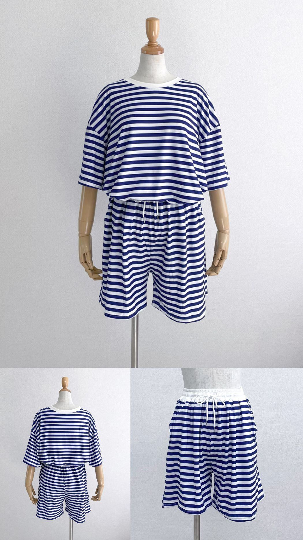 【メール便】半袖 ルームウェア オーバーサイズ ボーダーレディース/tops2254