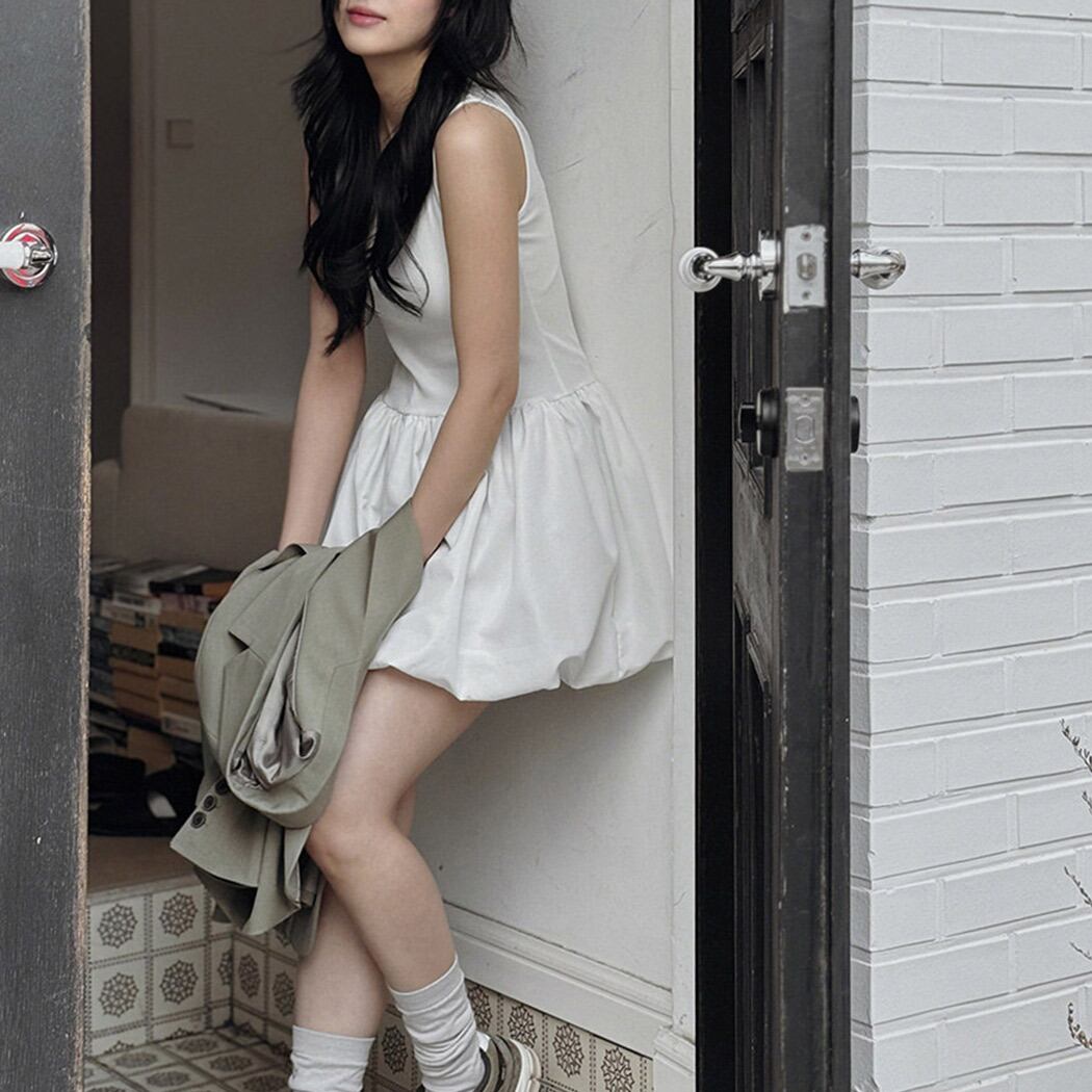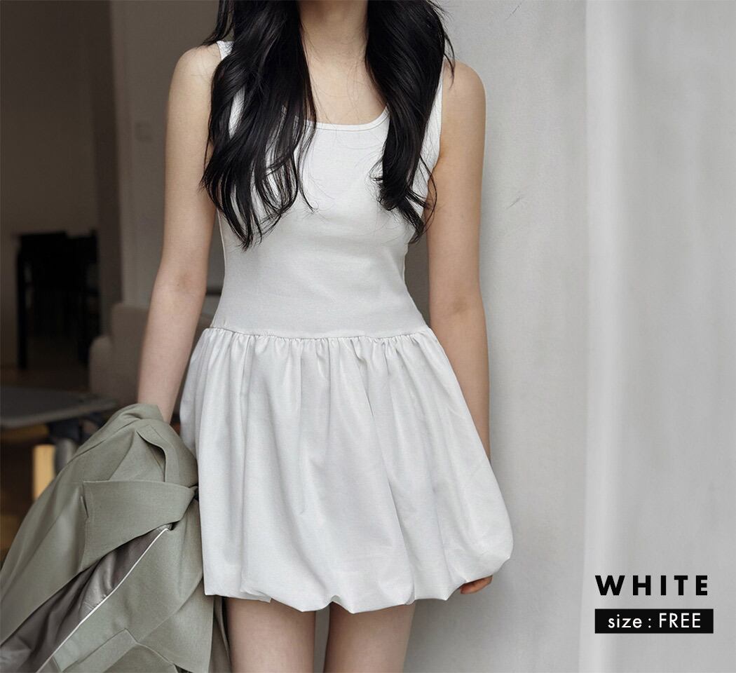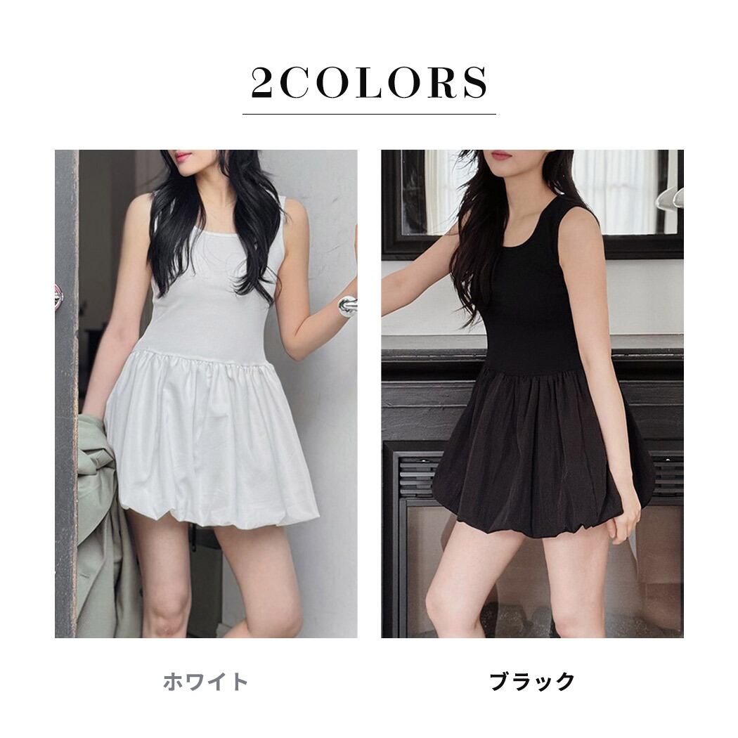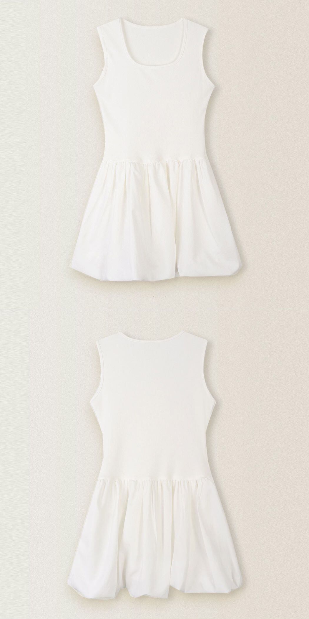 すっきりとしたUネック×ノースリーブのデザインに、ふんわり広がるバルーンスカートを組み合わせた、