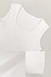 ノースリーブながらも、肩や胸元が程よくカバーされているため、大人っぽく着こなせます。