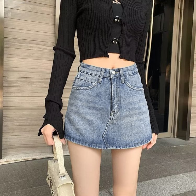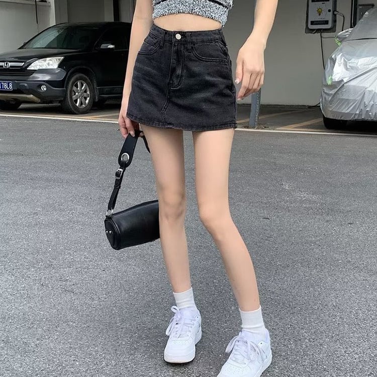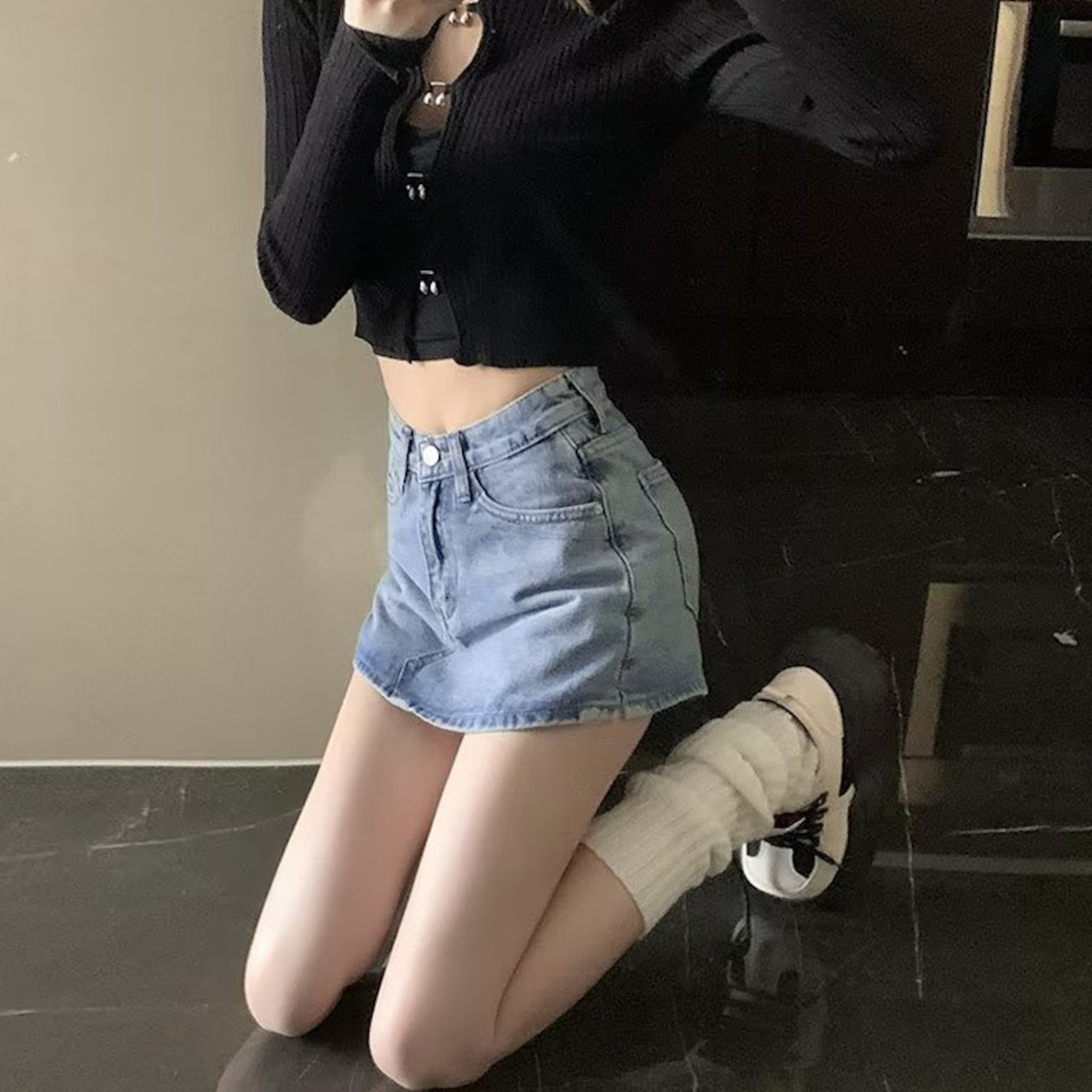 スカートの中が見えず安心なデニム地のミニスカパン。