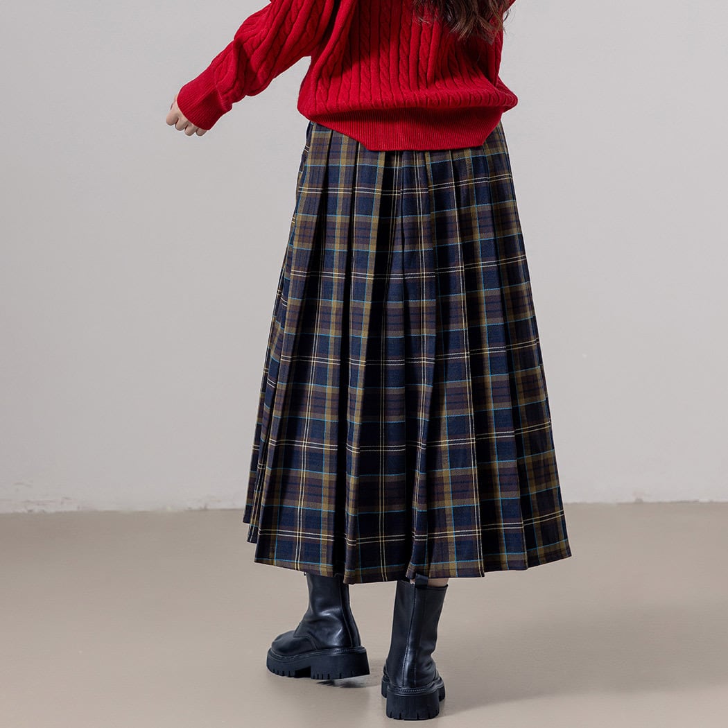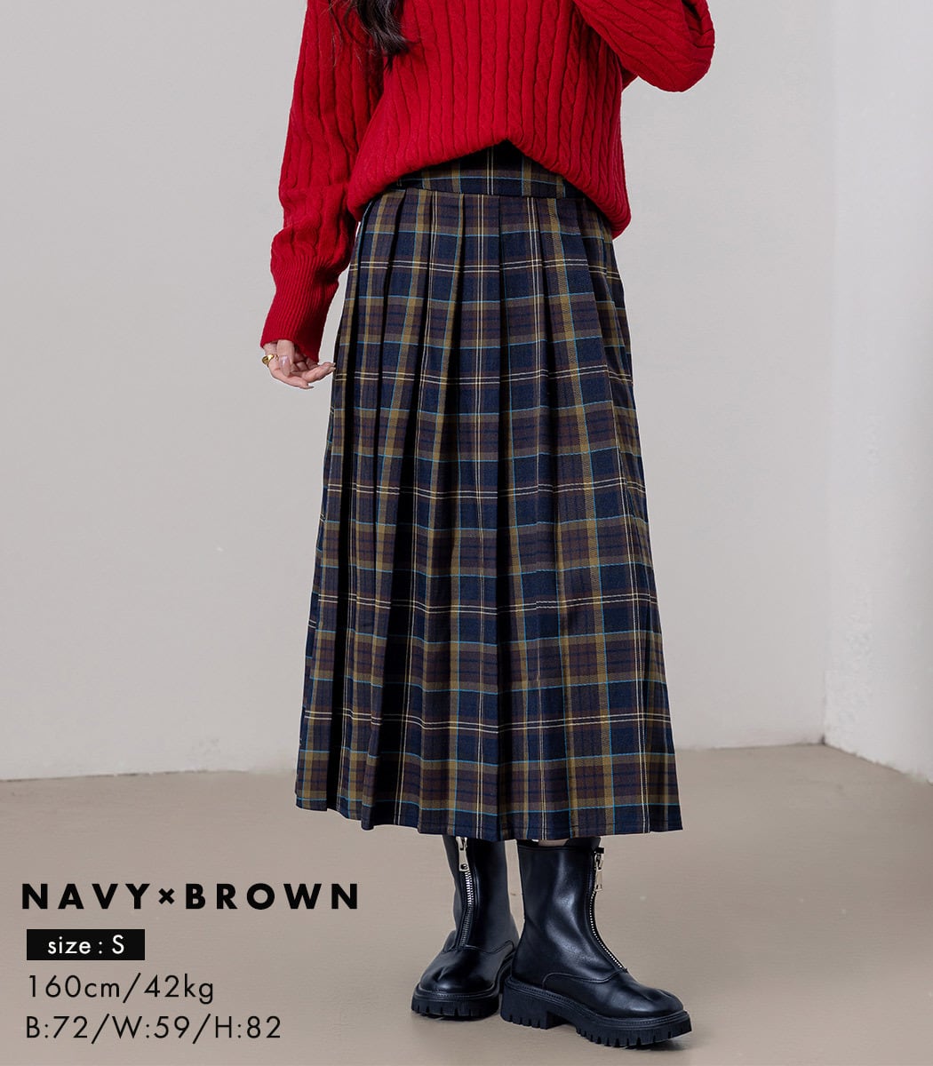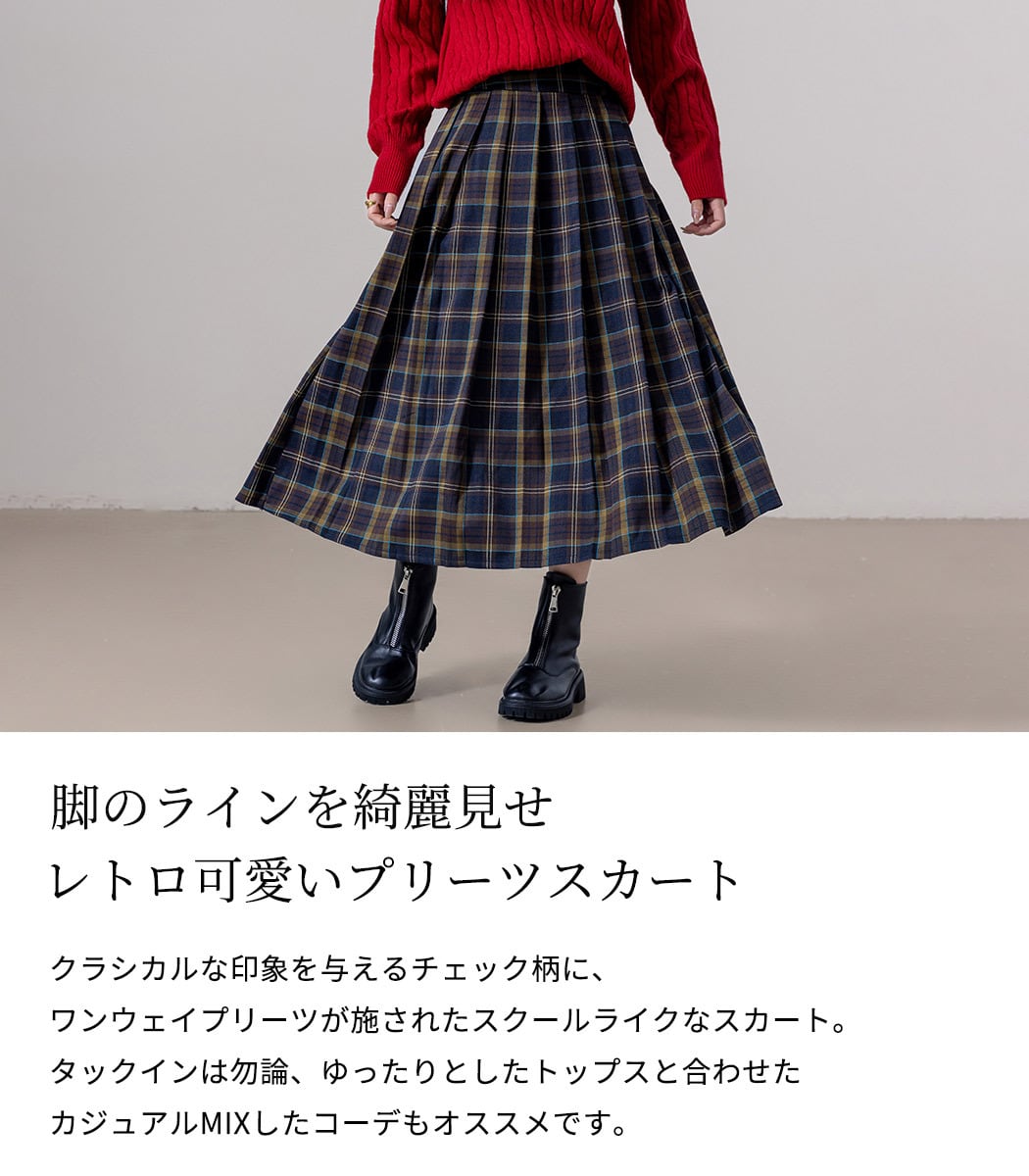 【メール便】チェック プリーツスカート ロング レディース/skirt048
