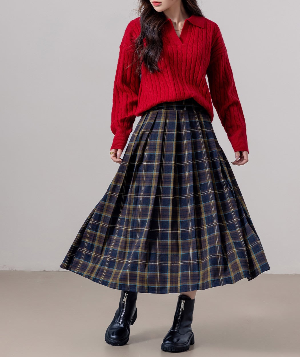 チェック柄×プリーツが魅力的