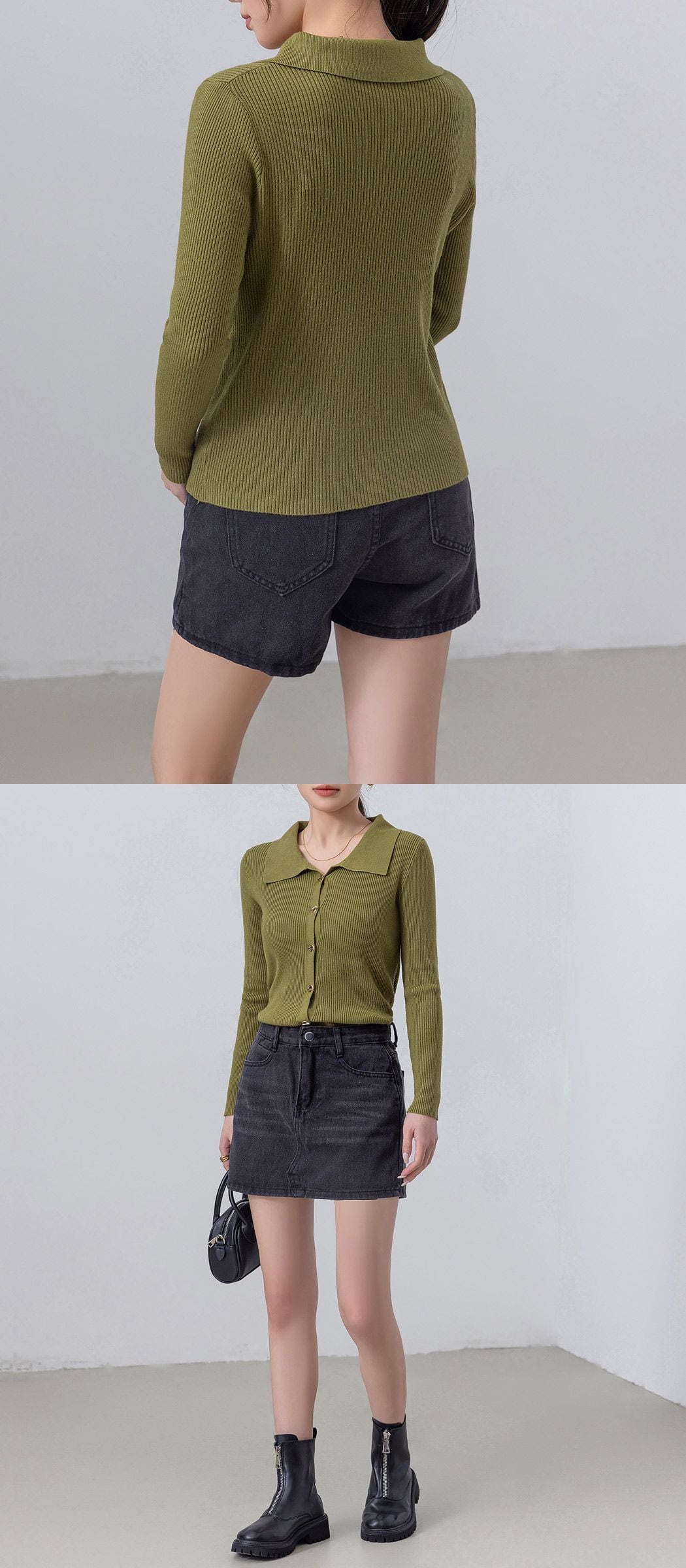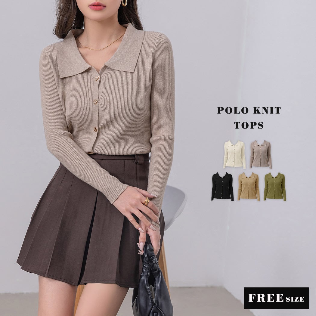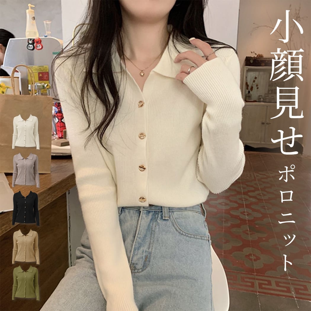【メール便】 レディース トップス 小顔見せ ポロニット/tops2185