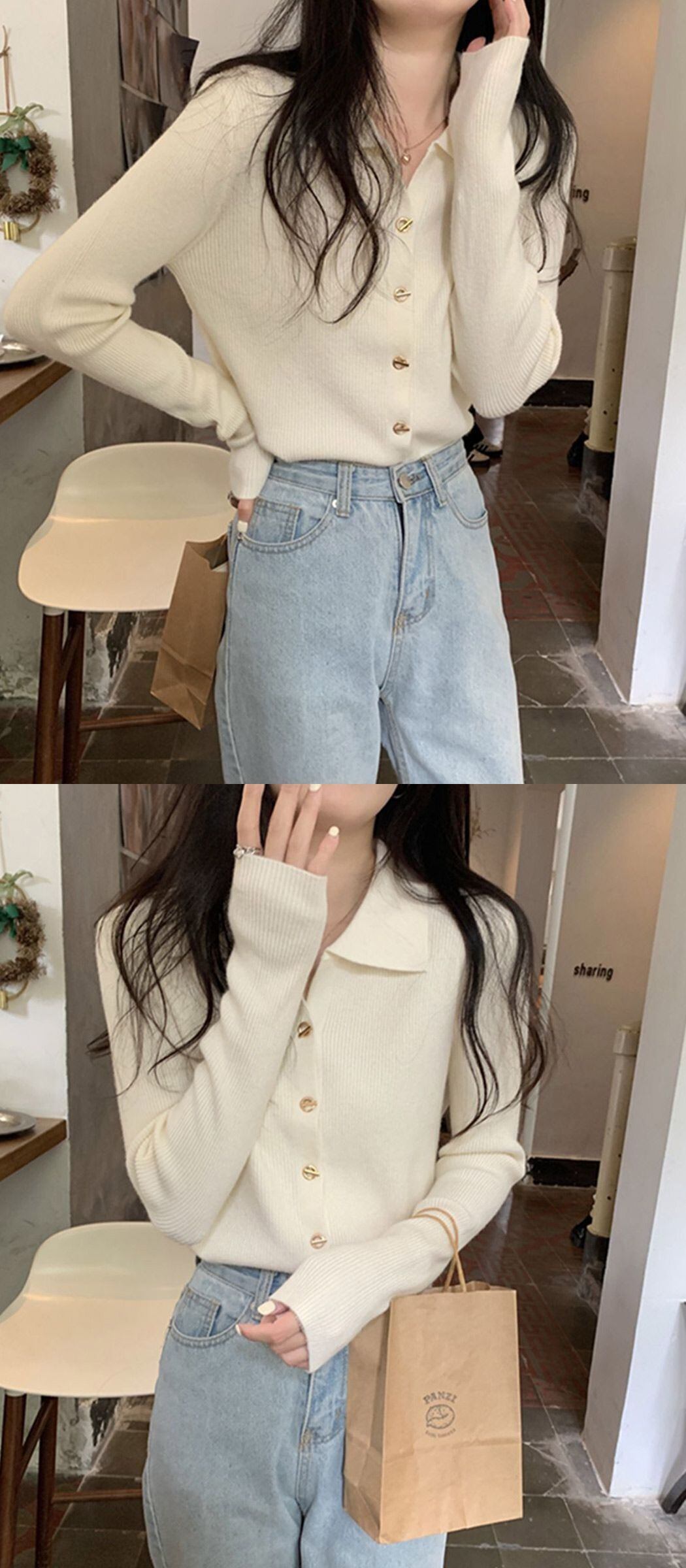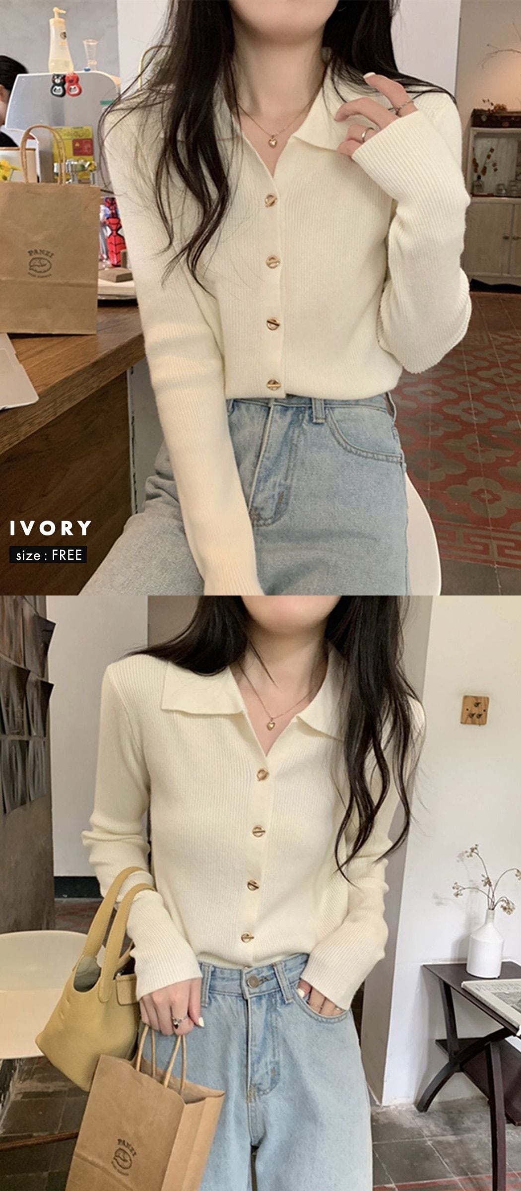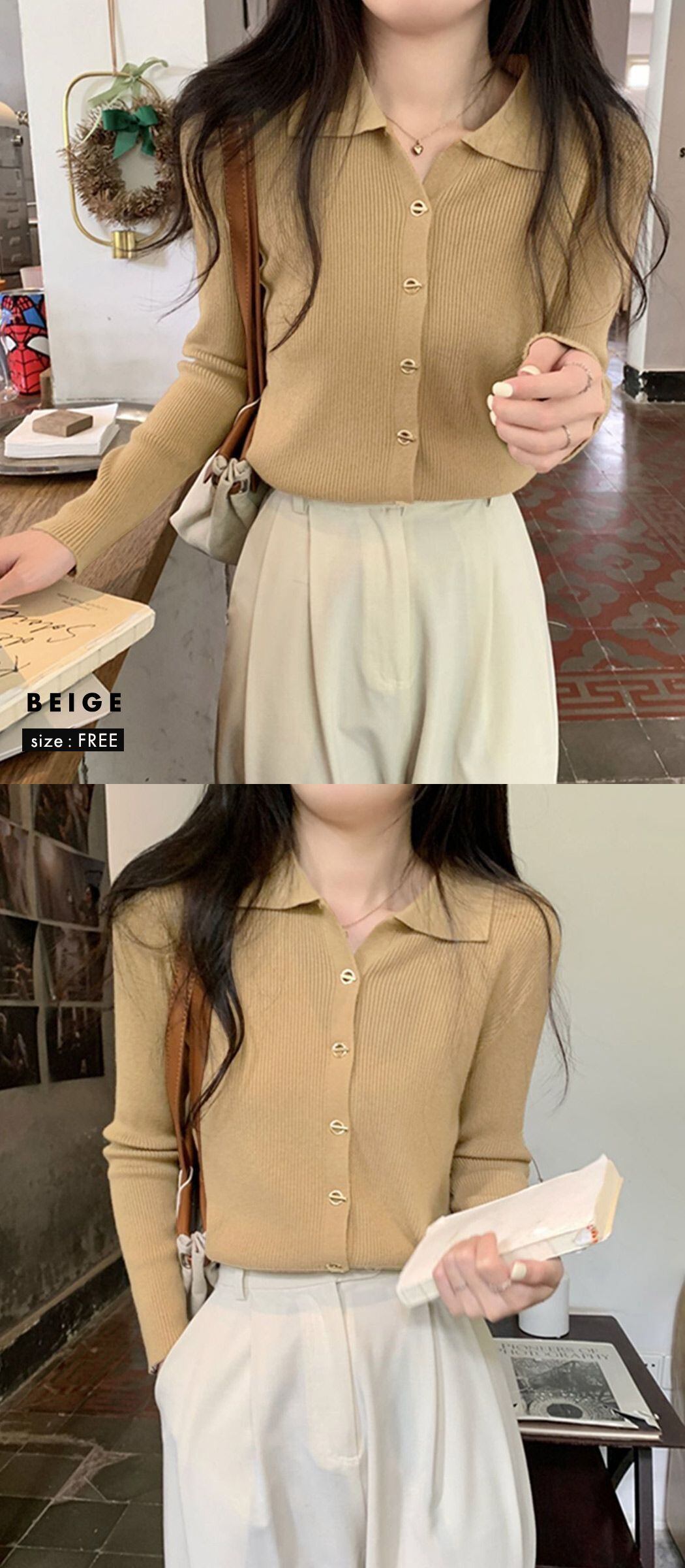 【メール便】 レディース トップス 小顔見せ ポロニット/tops2185
