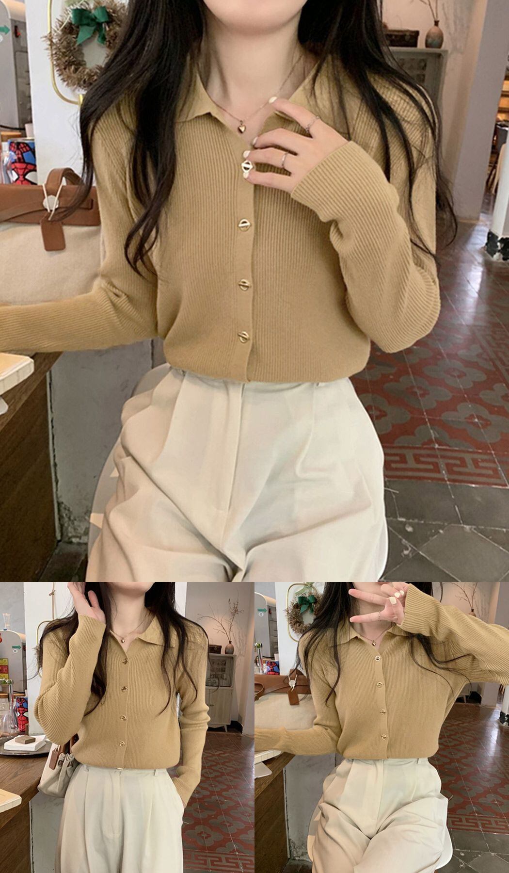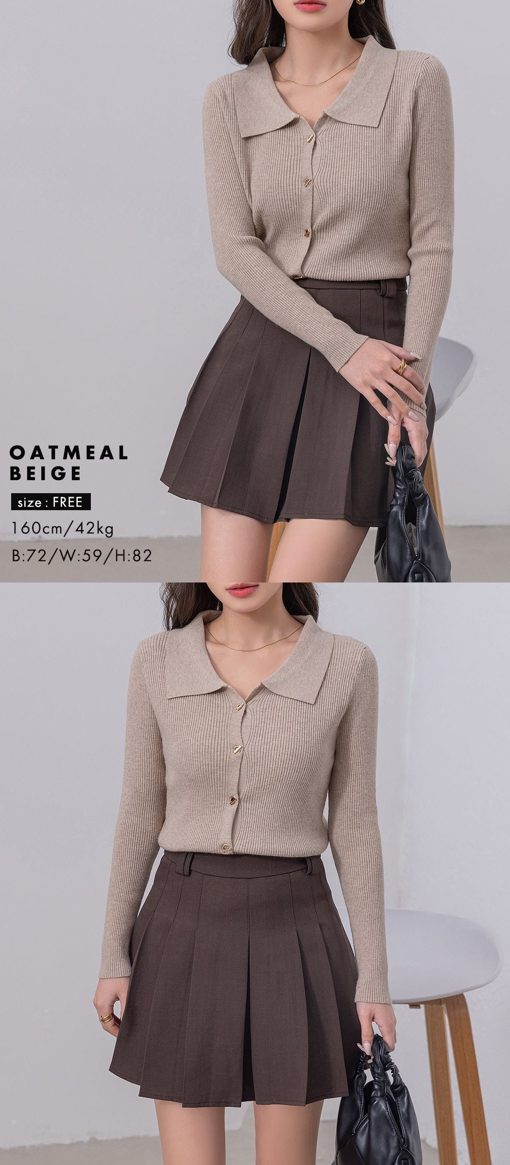 細見え効果&少し広めに開いた襟で小顔効果が期待できるトップス。