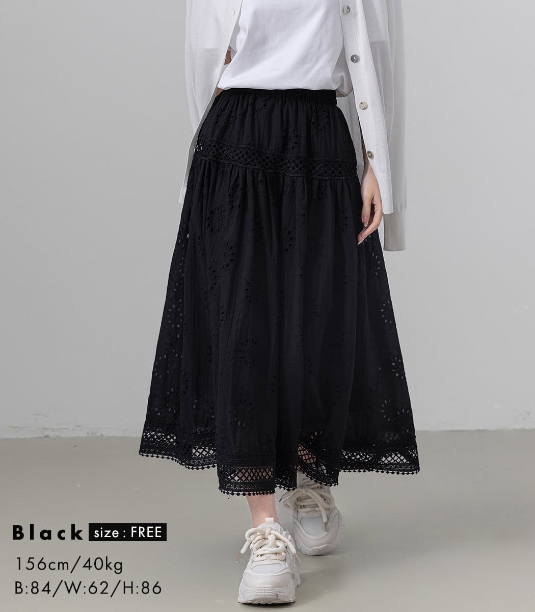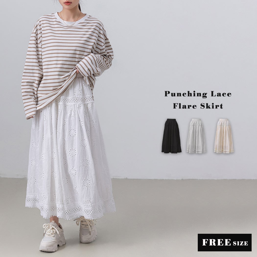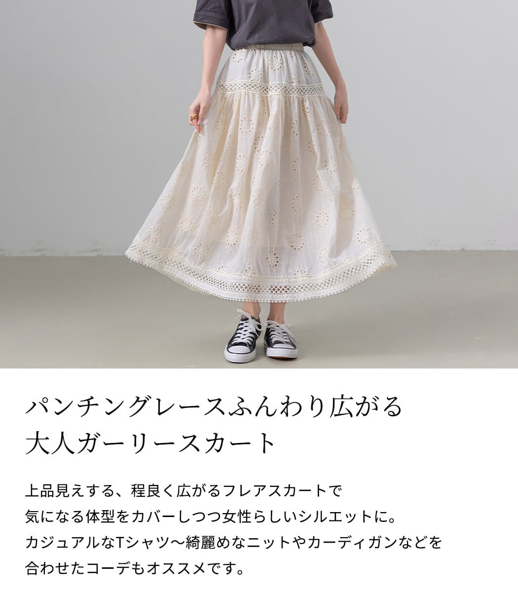 【メール便】花柄 パンチング レース スカート フレア レディース/skirt047