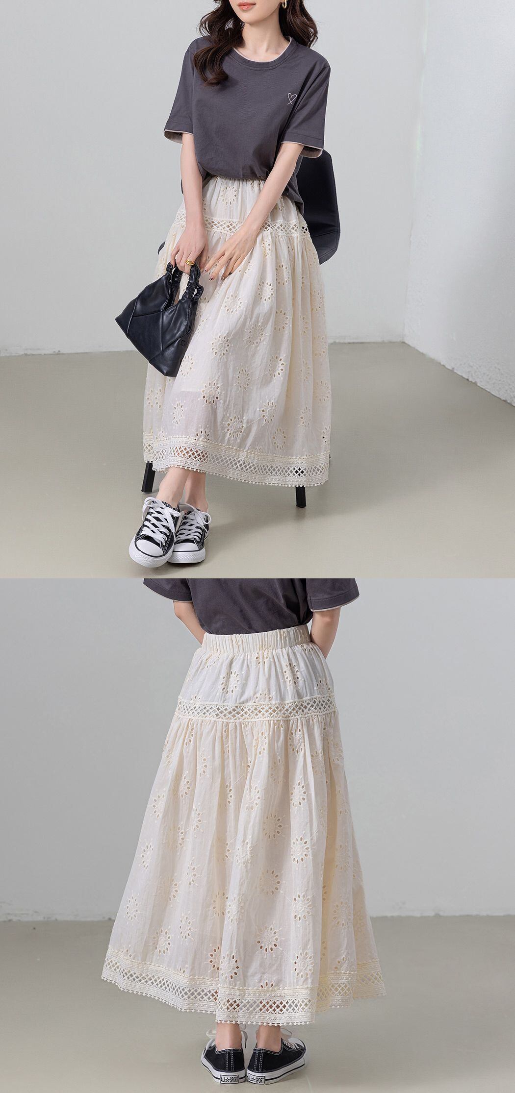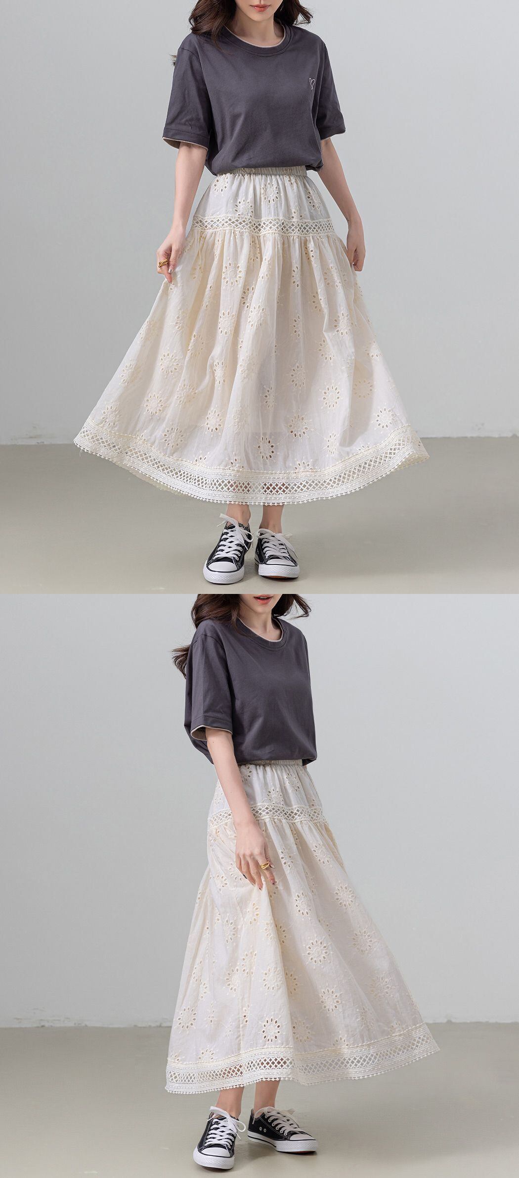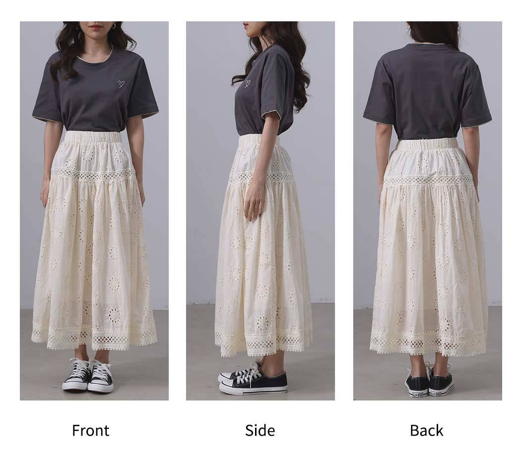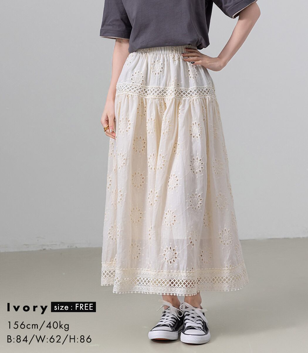 【メール便】花柄 パンチング レース スカート フレア レディース/skirt047