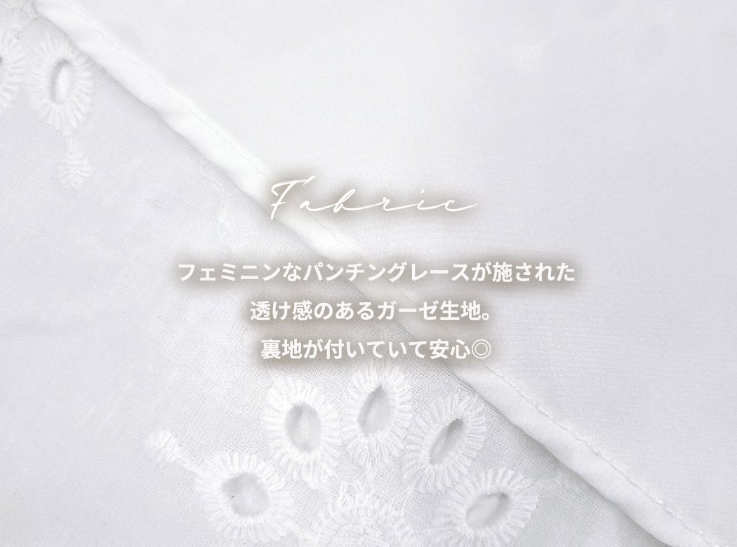 フェミニンなパンチングレースが施された透け感のあるガーゼ生地。