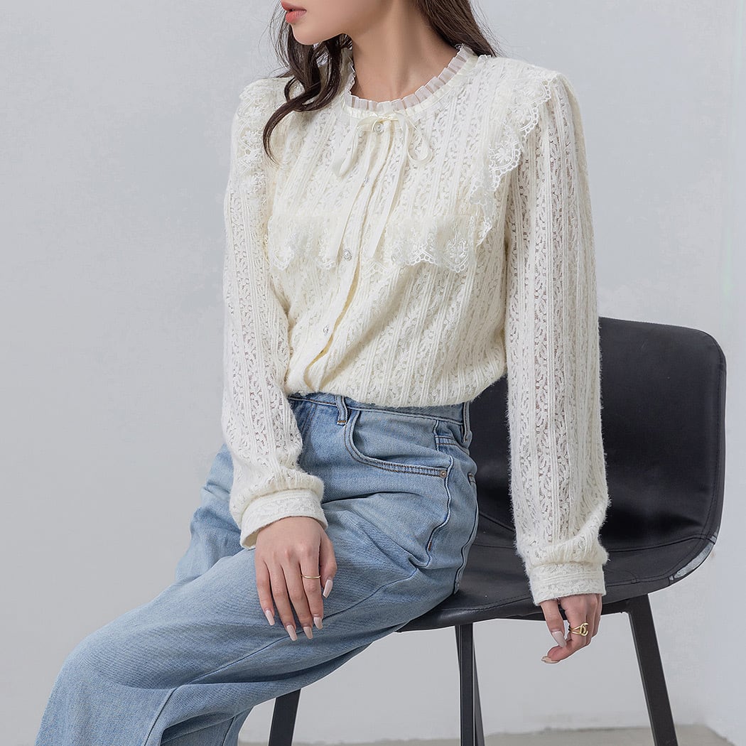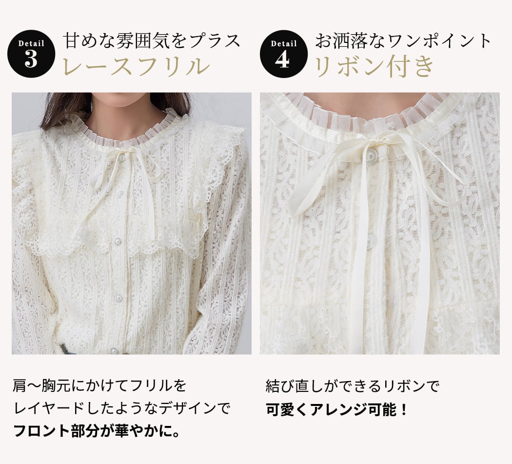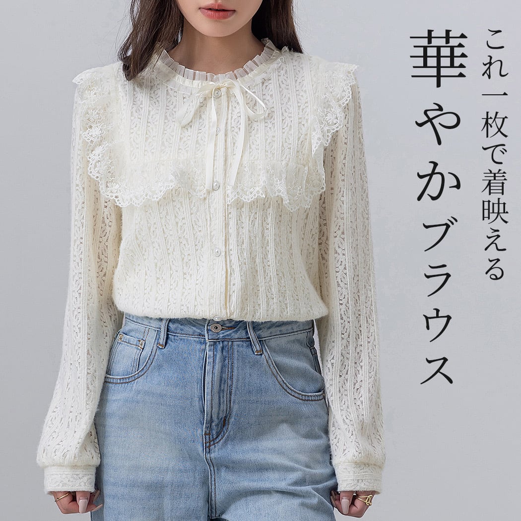 これ一枚で着こなしに華やかさと上品さを与えてくれる着映え力のあるレースブラウス。