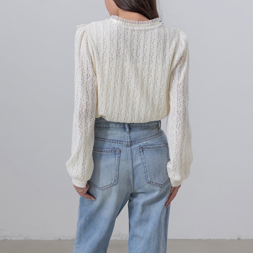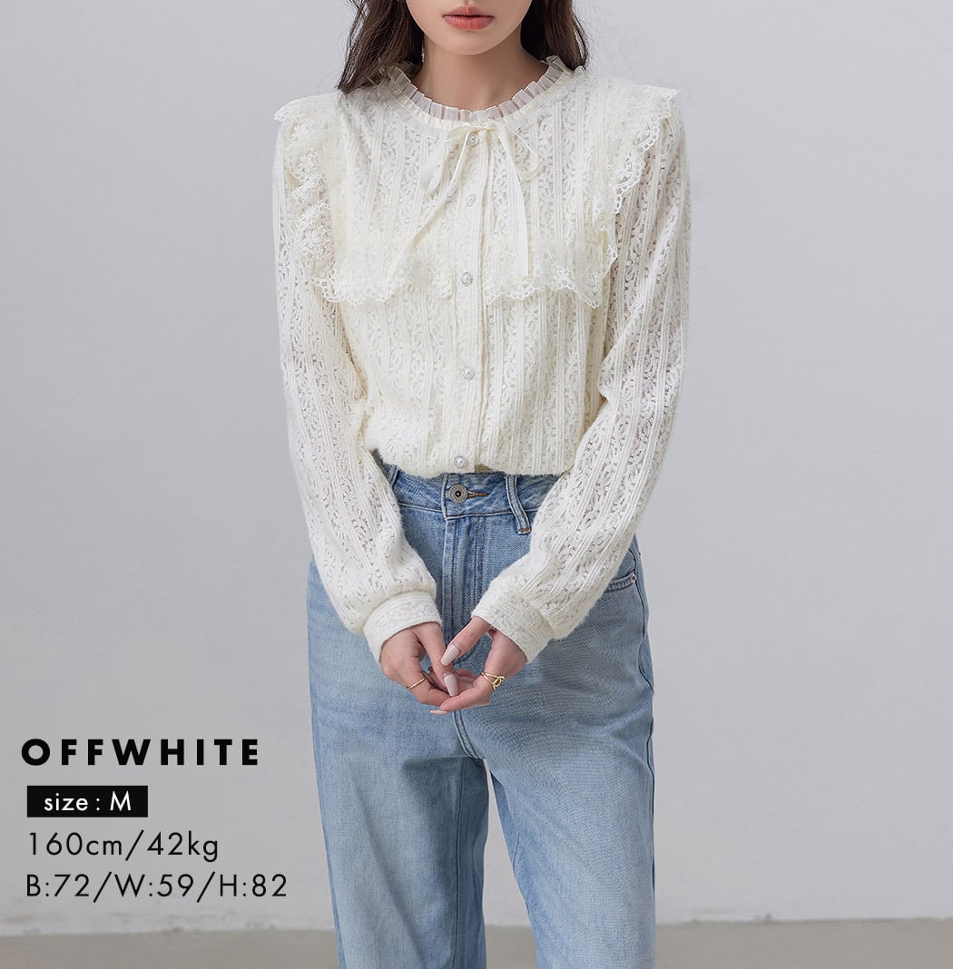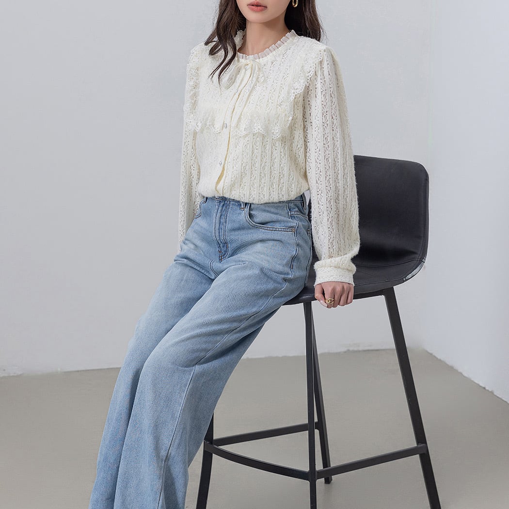 これ一枚で着こなしに華やかさと上品さを与えてくれる着映え力のあるレースブラウス。