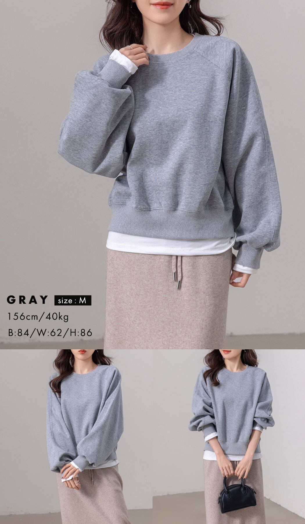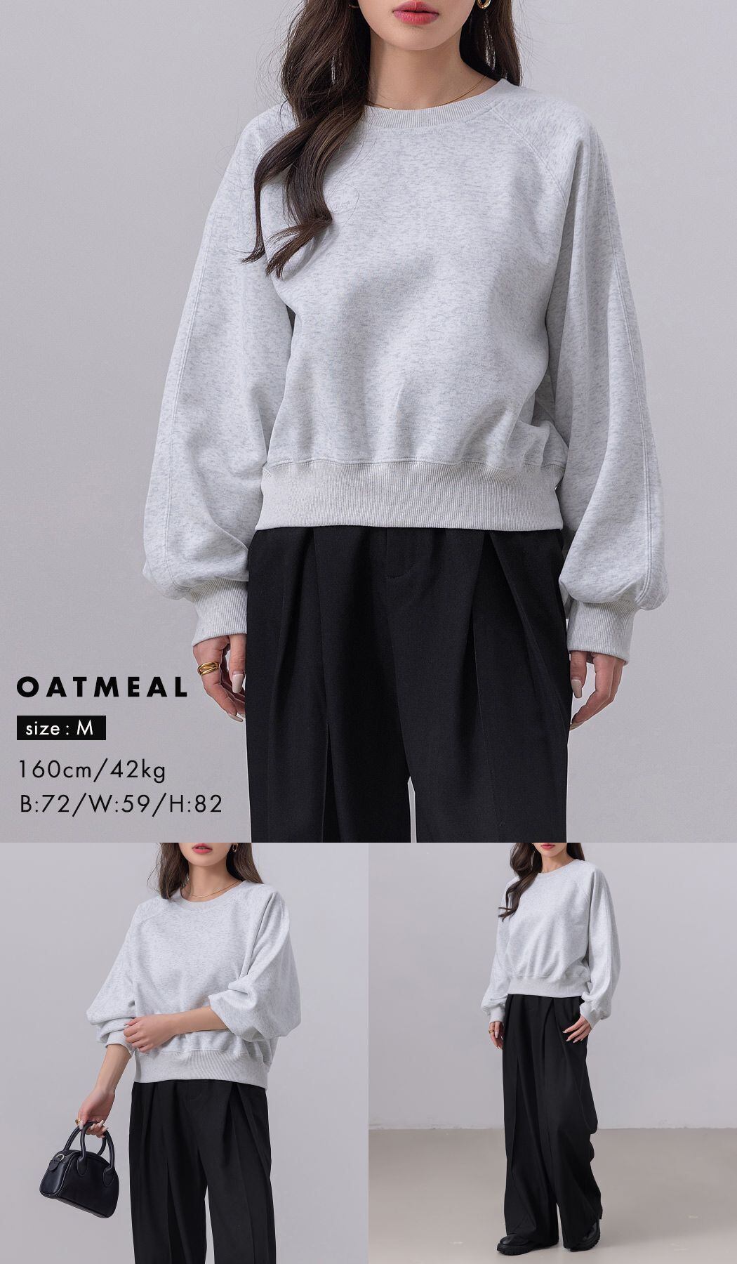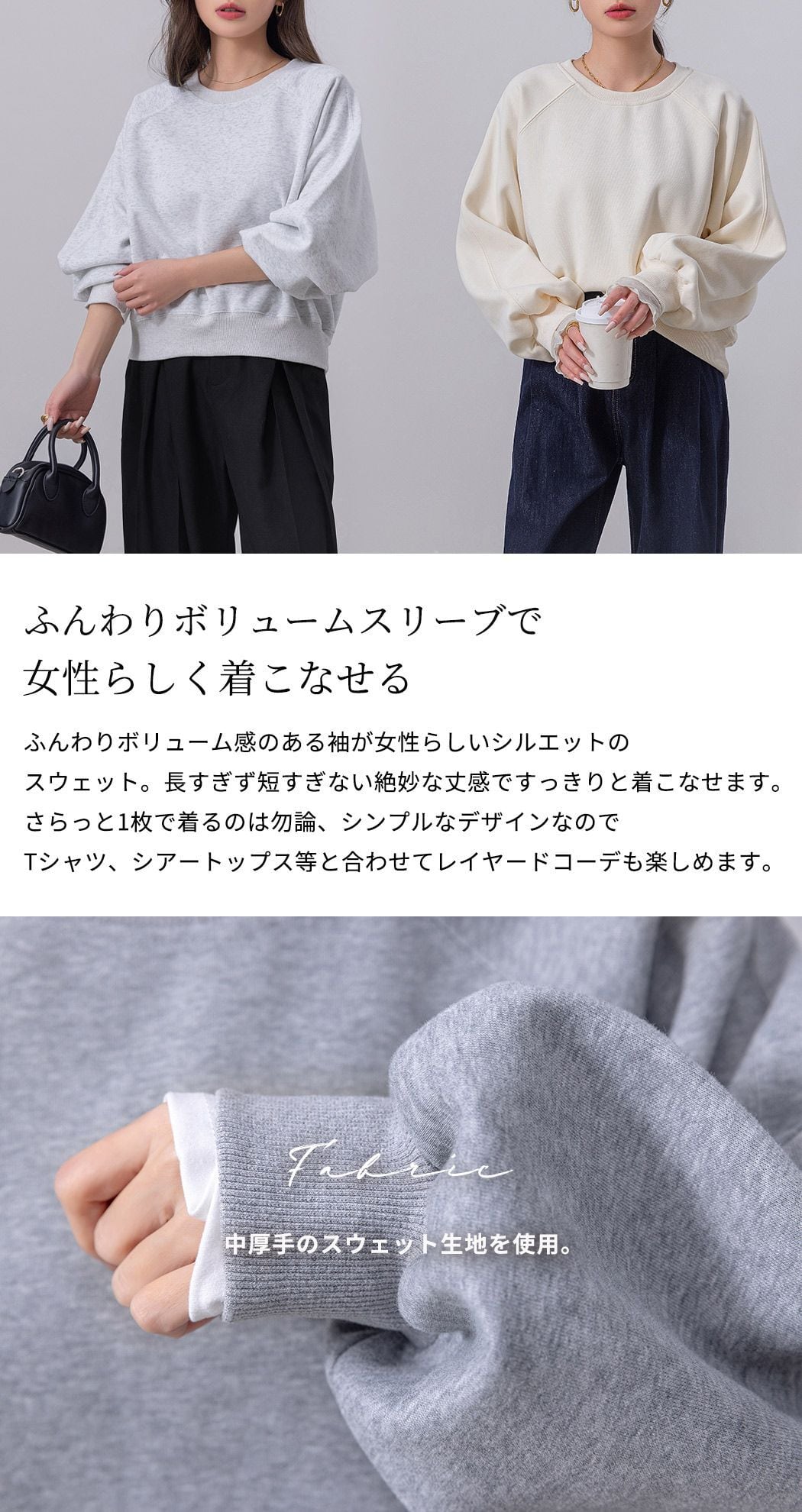 ふんわりボリューム感のある袖が女性らしいシルエットのスウェット。