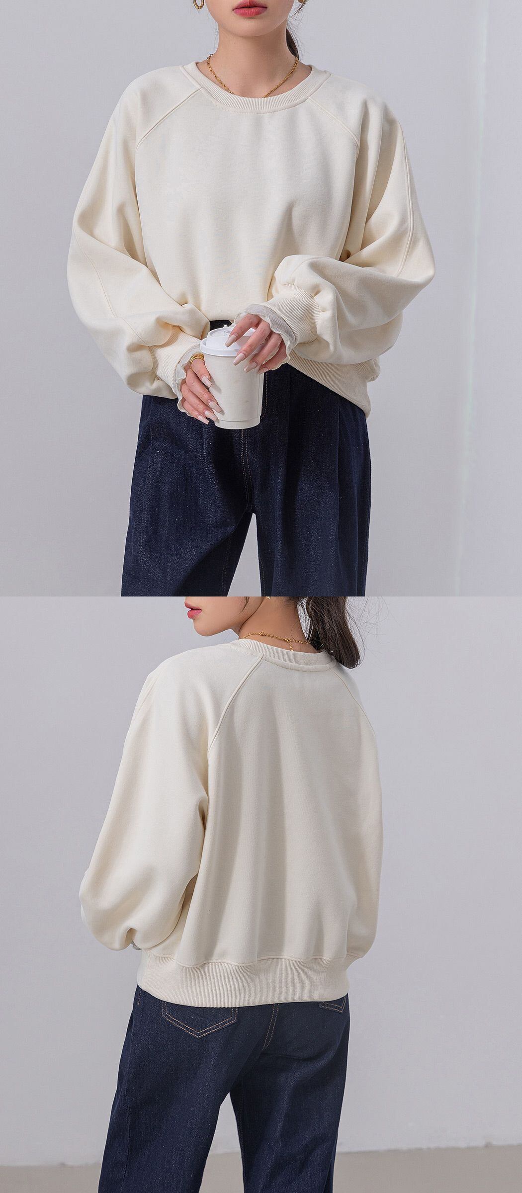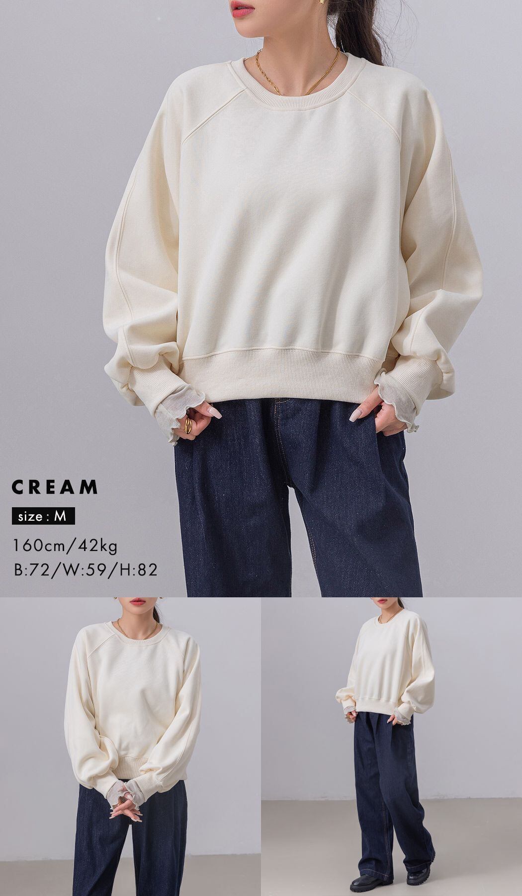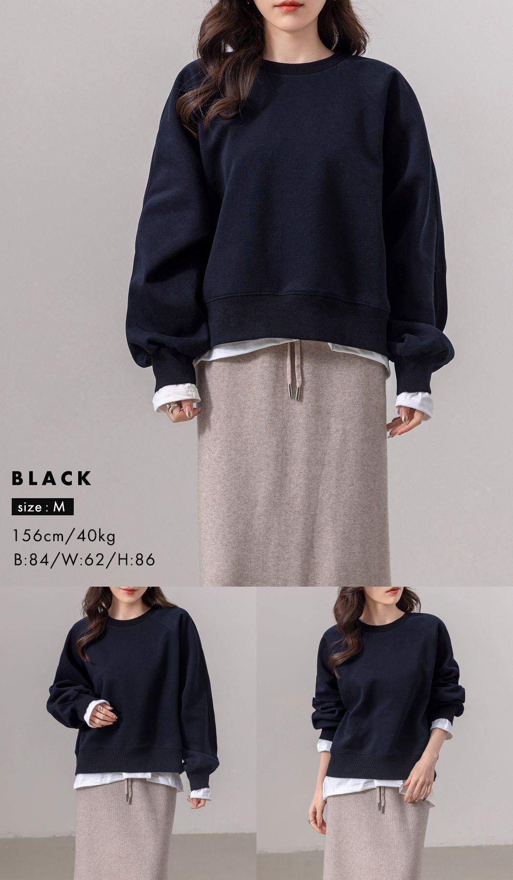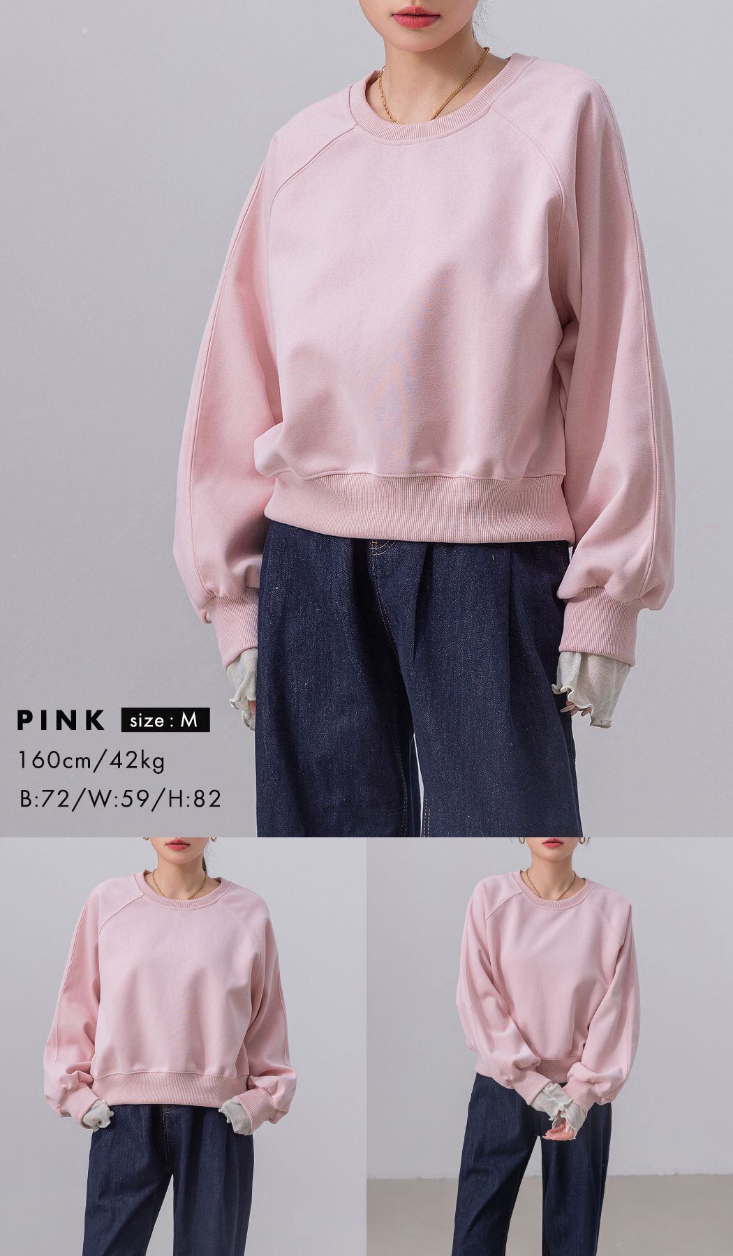 ふんわりボリューム感のある袖が女性らしいシルエットのスウェット。