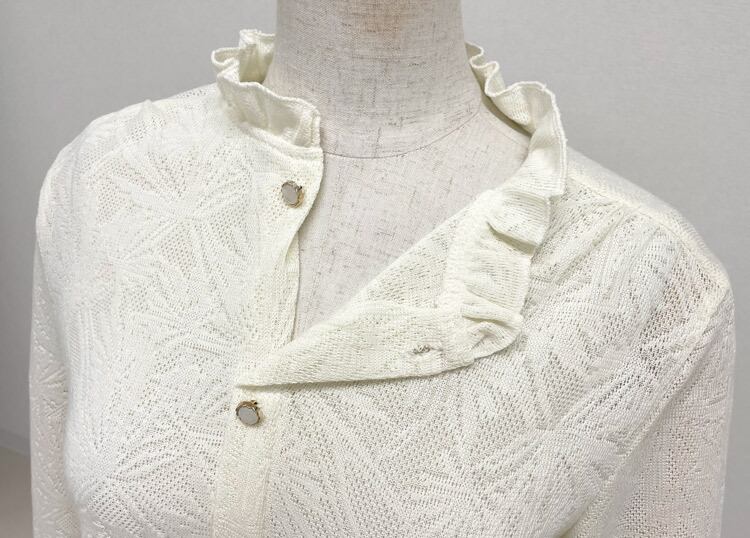 首元のフリルが、お顔周りを華やかに演出します。