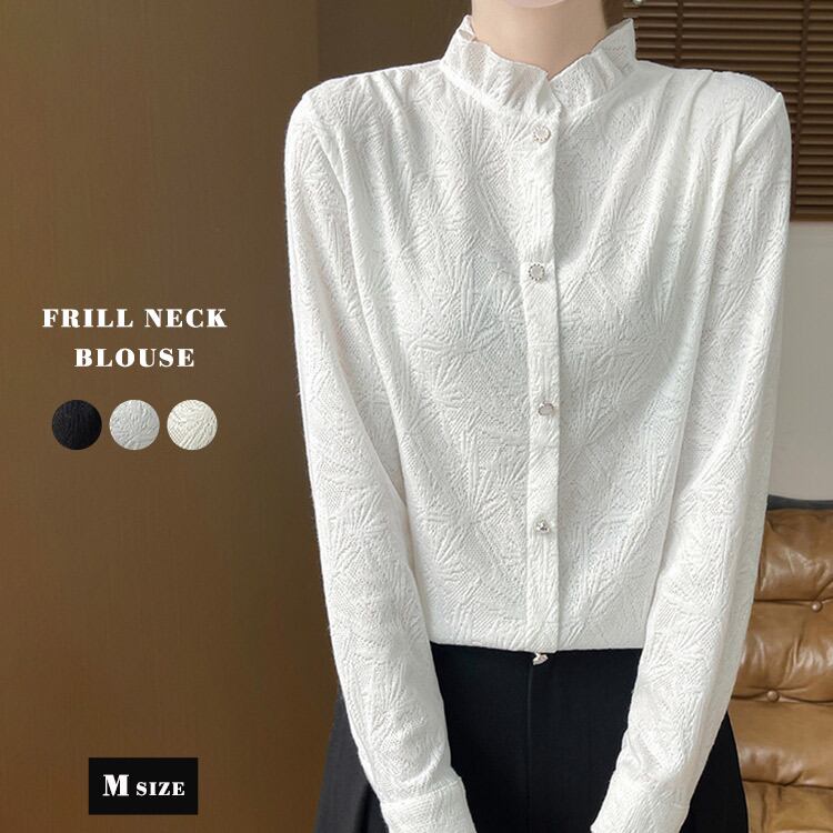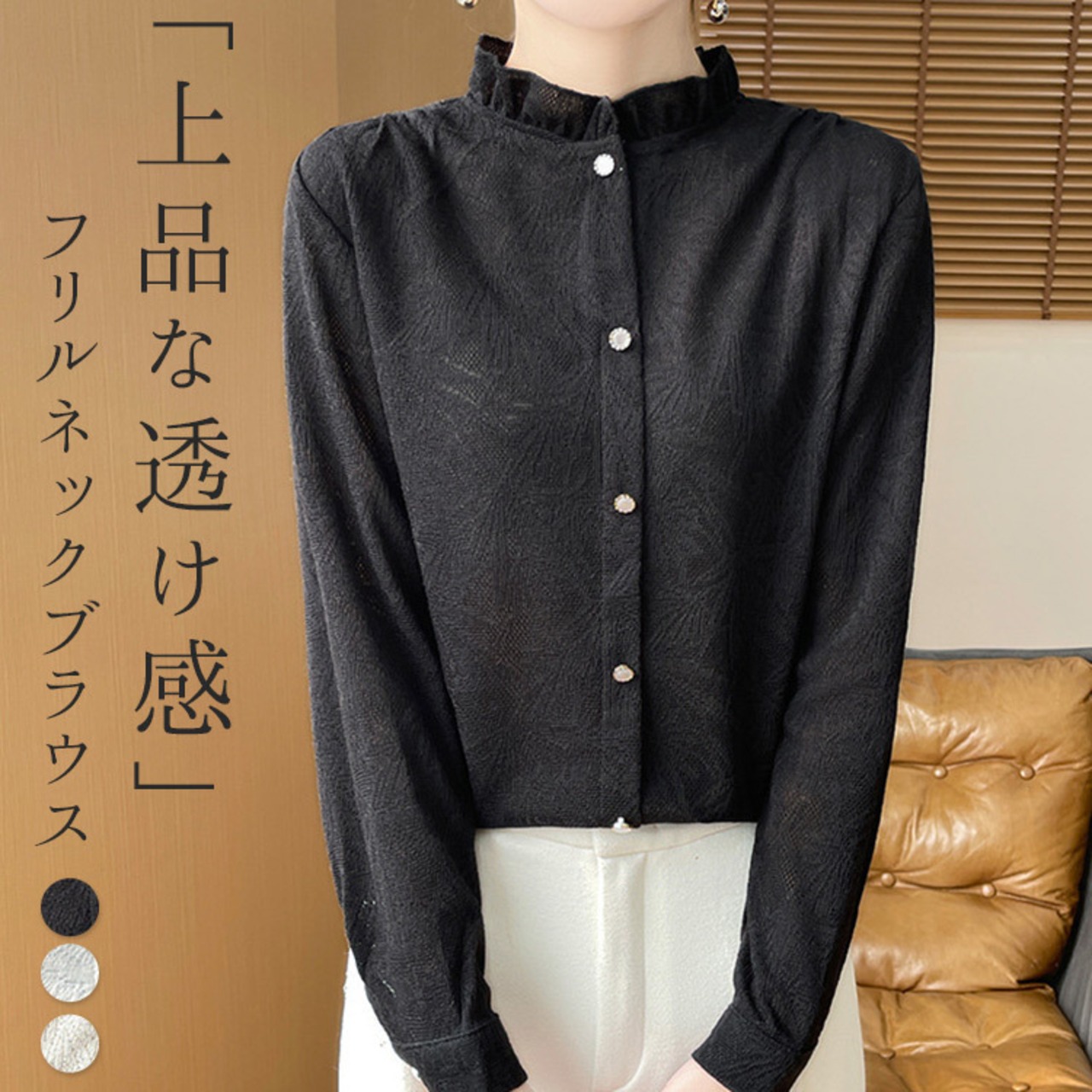 「上品な透け感」フリルネックブラウス