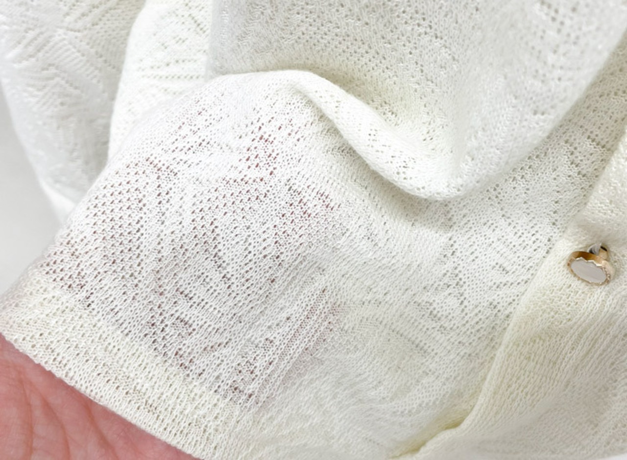透かし編み模様が大人っぽくキレイめに着こなせるブラウス。
