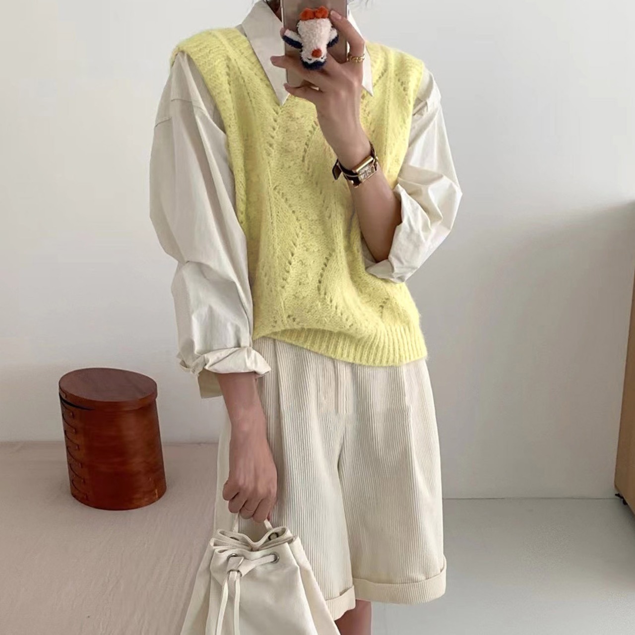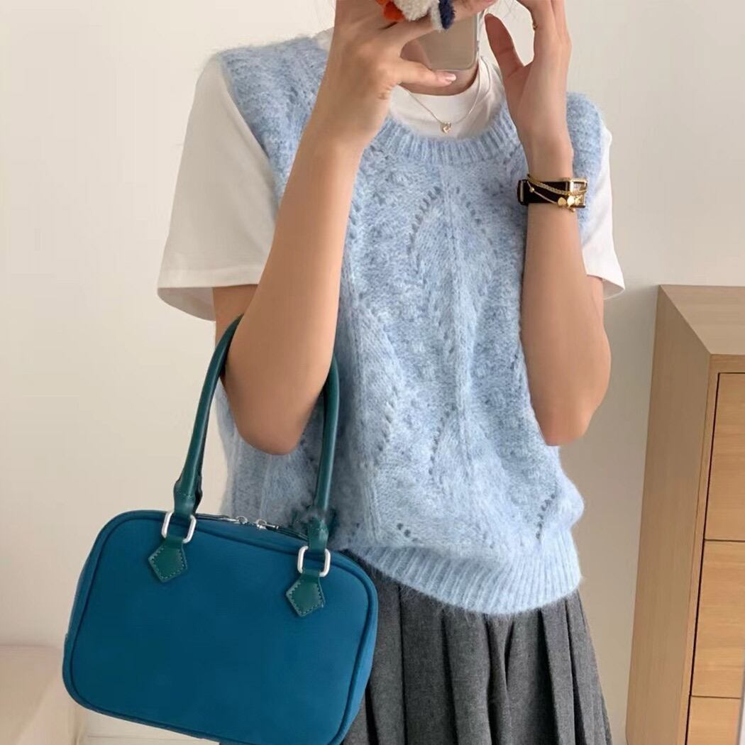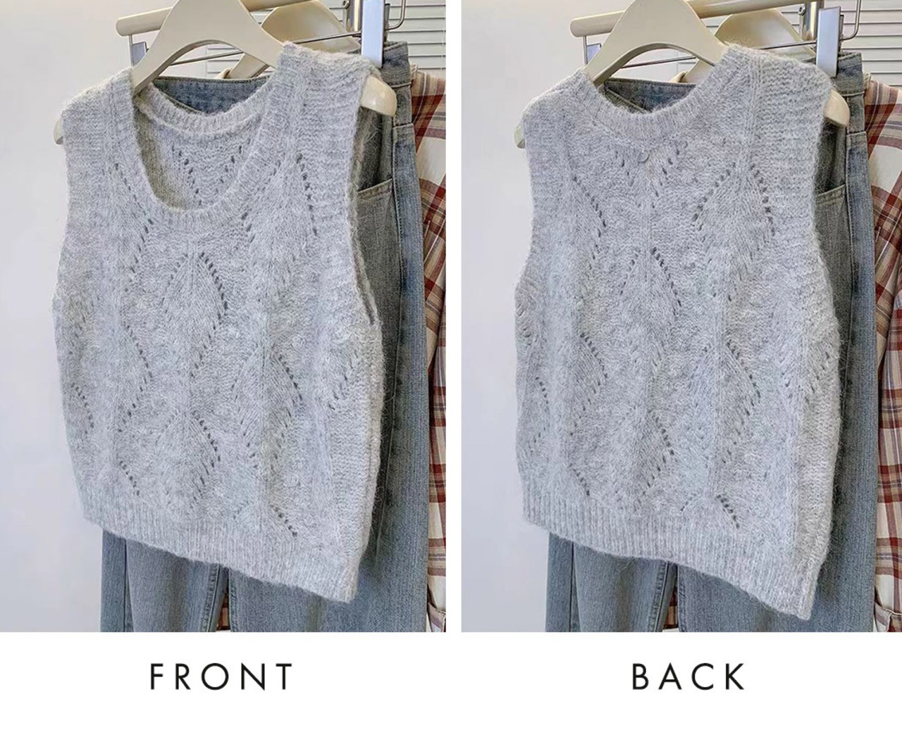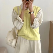 柔らかく温かみのあるニット素材で仕立てた、着心地のよいベスト。