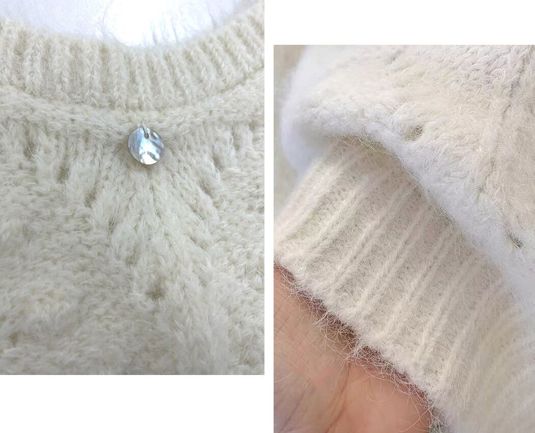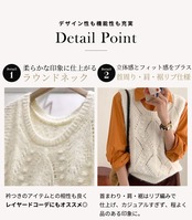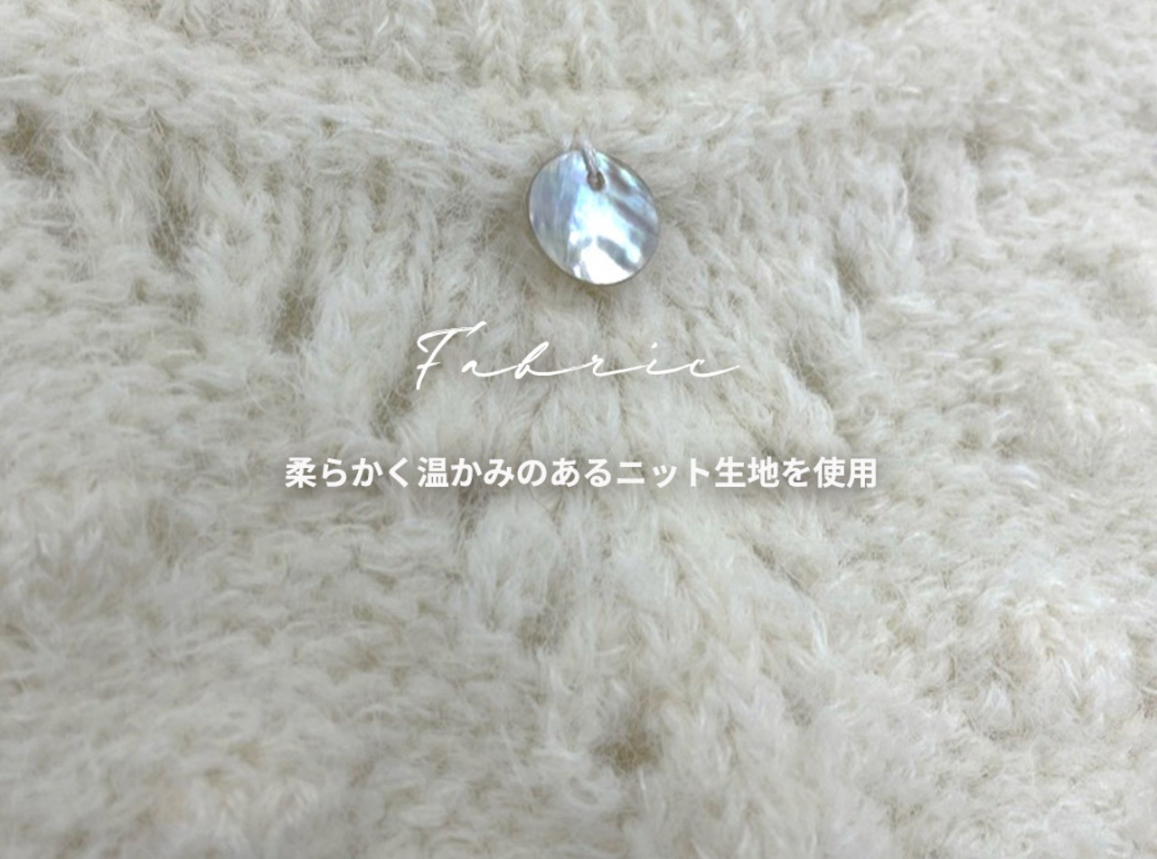 首まわり・肩・裾はリブ編みで仕上げ、カジュアルすぎず、程よく品のある印象に。