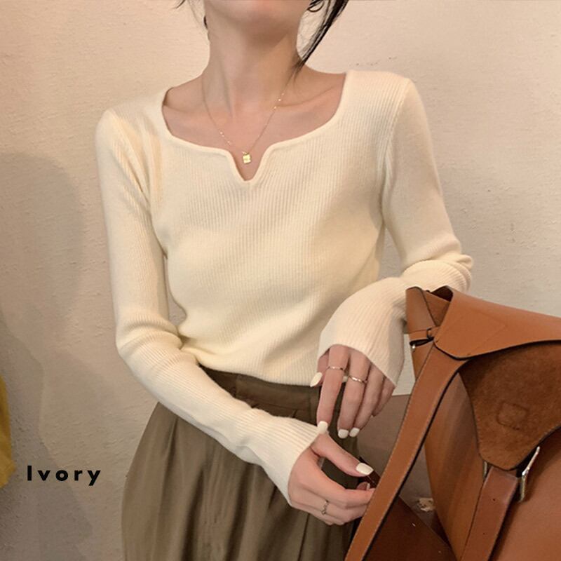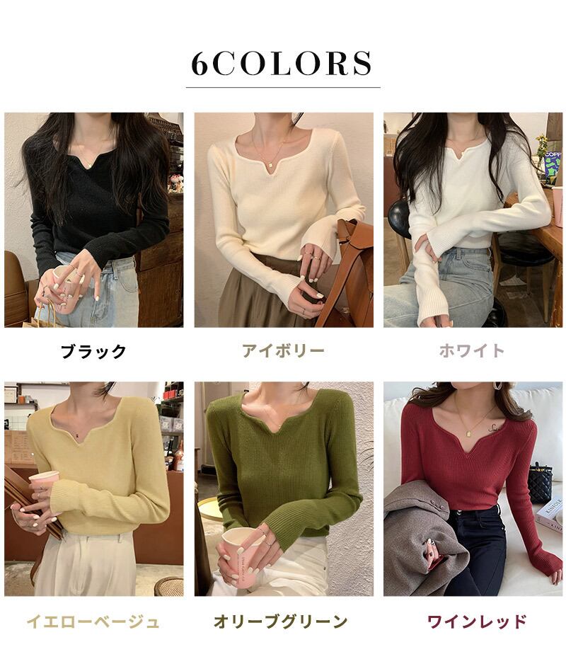 首元すっきり見えするキーネック