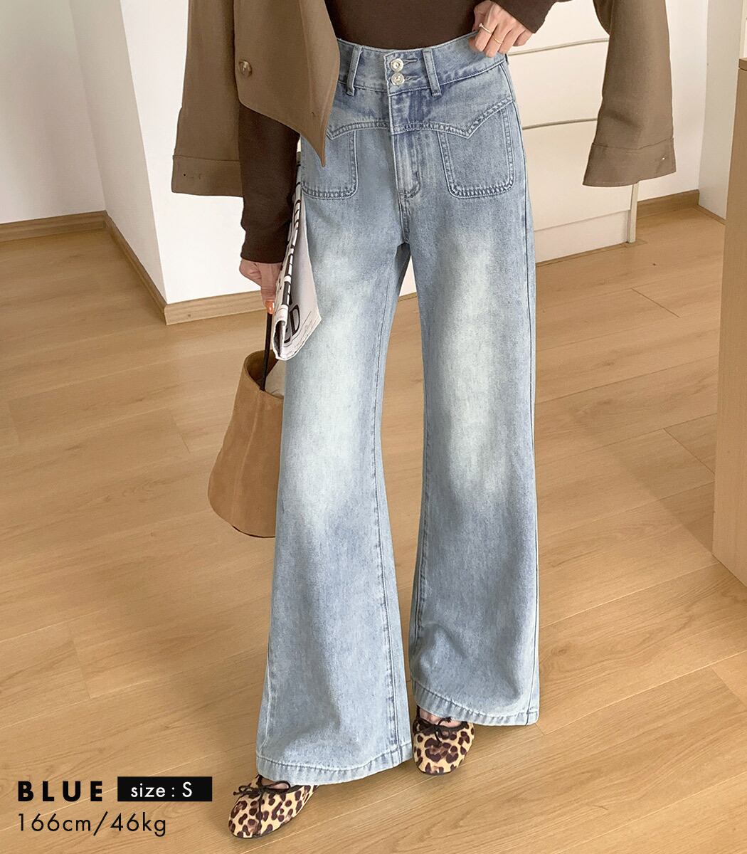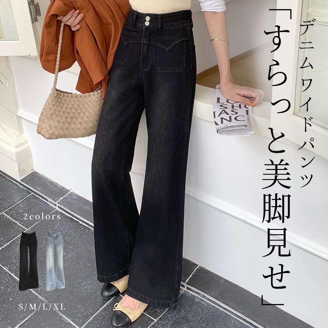 【宅配便】「斬新フラップ」デニム パンツ ワイド レディース ボトムス/pants657