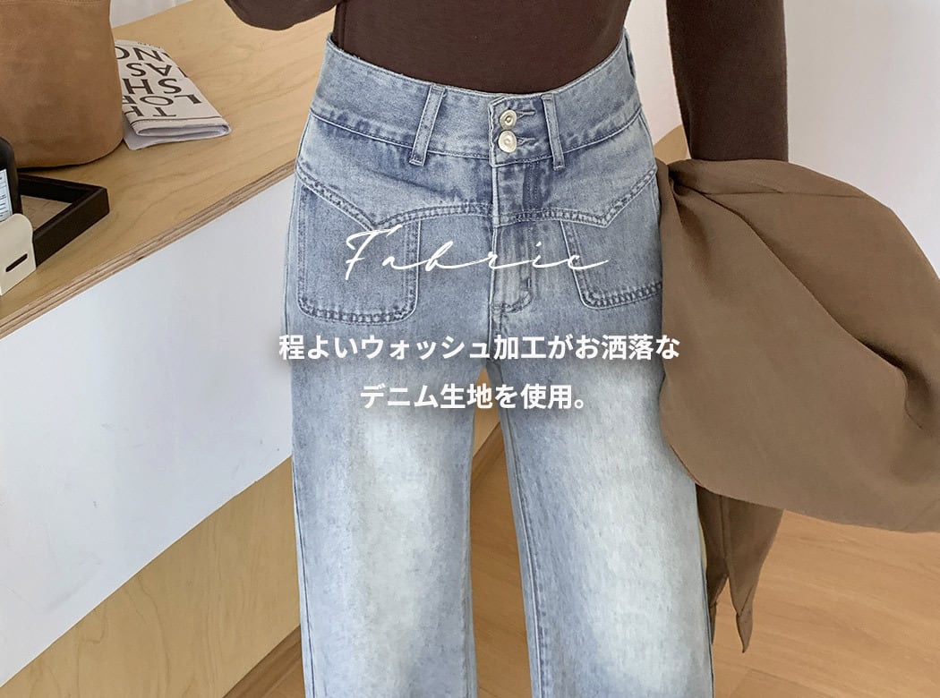 程よいウォッシュ加工がお洒落なデニム生地を使用。