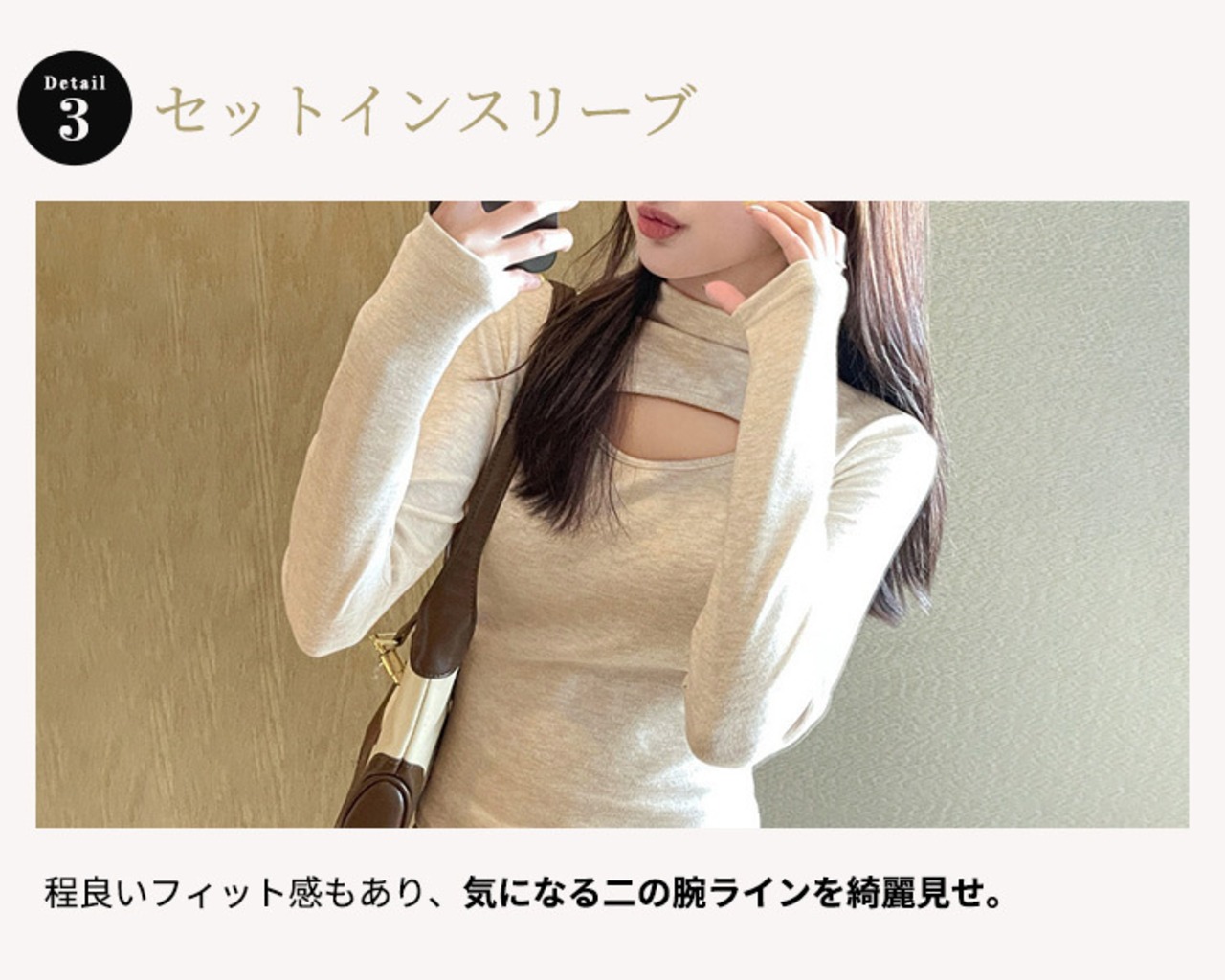 程良いフィット感もあり、気になる二の腕ラインを綺麗見せ。