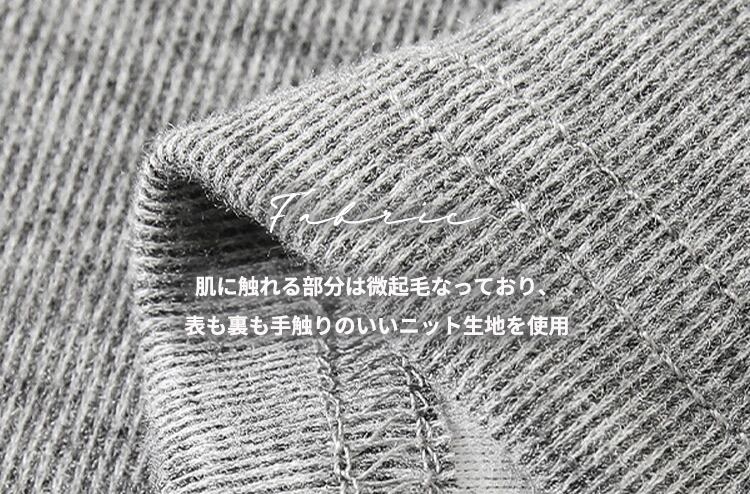 肌に触れる部分は微起毛なっており、表も裏も手触りのいいニット生地を使用