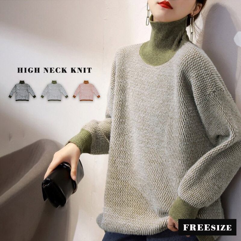 【宅配便】「首元あったかニット」ニット レディース 長袖 トップス ハイネック タートルネック ハイゲージ セーター /tops2272
