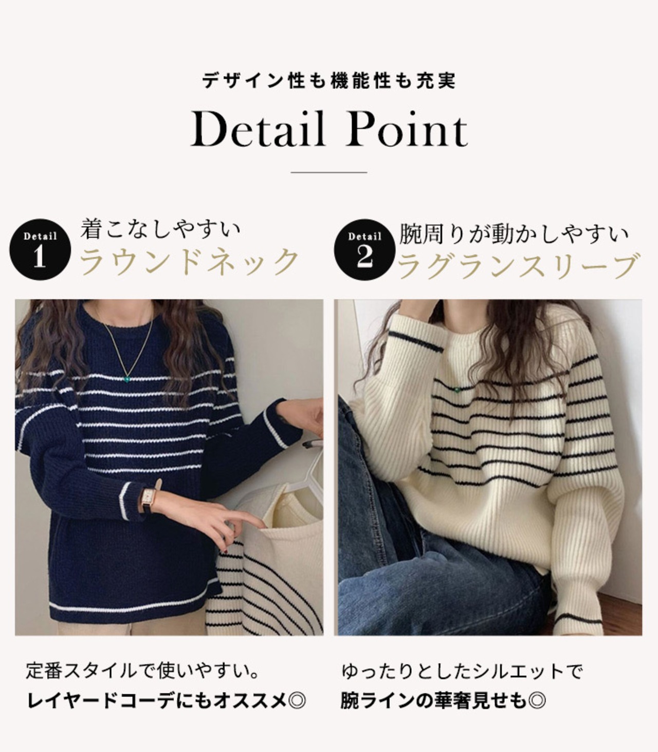 着こなしやすいラウンドネック