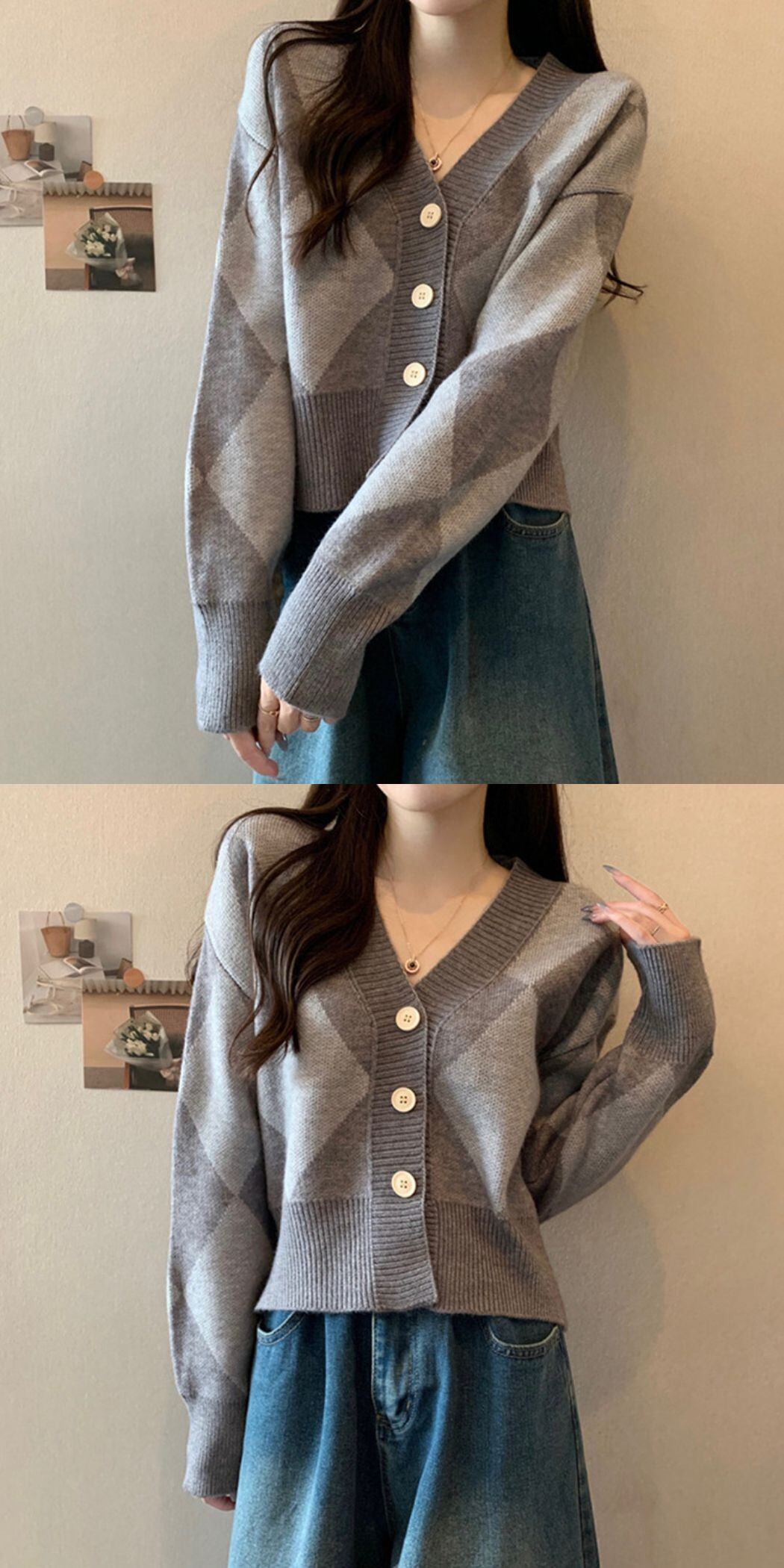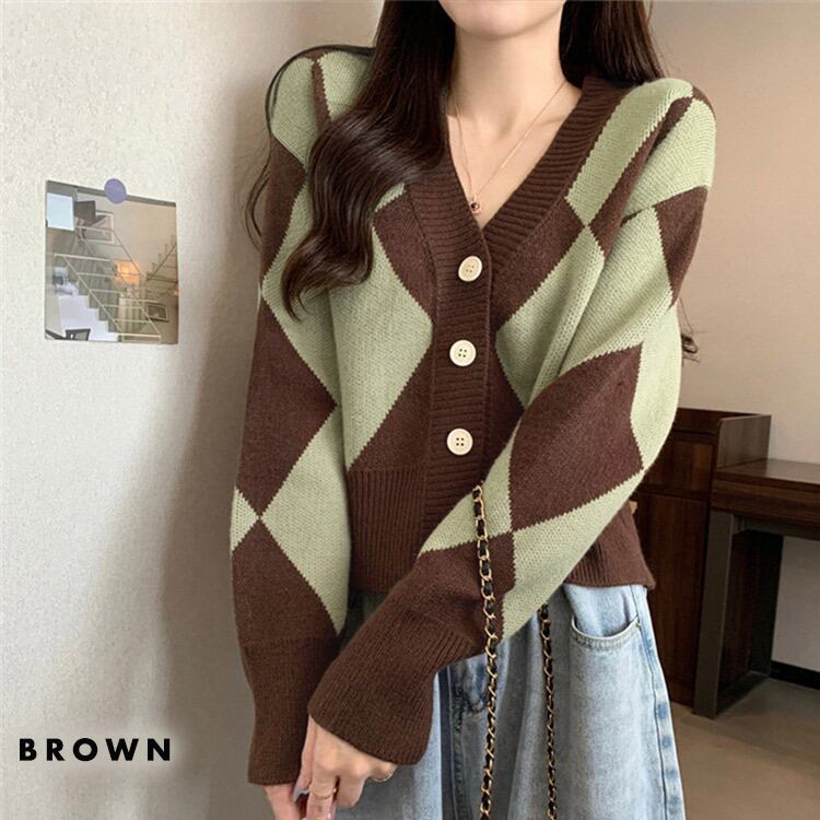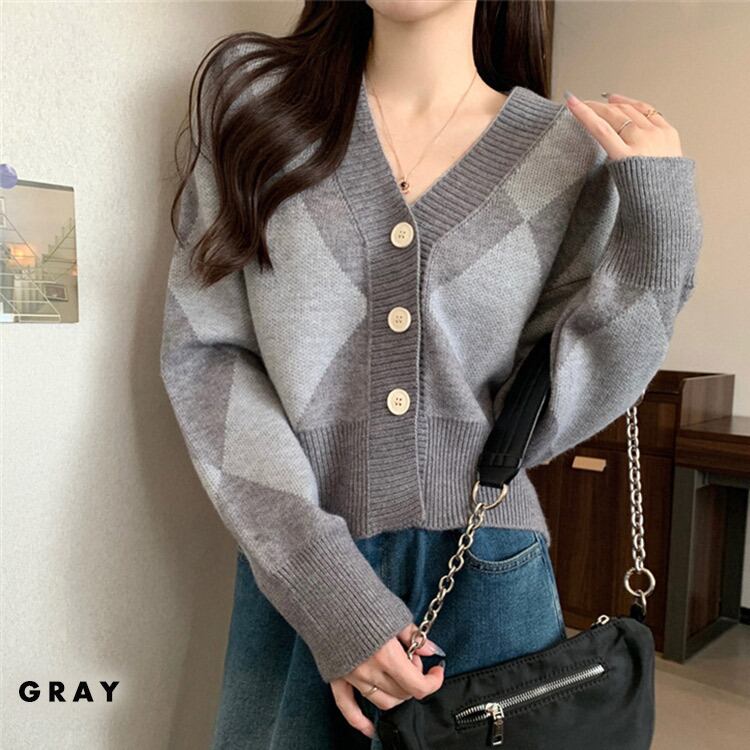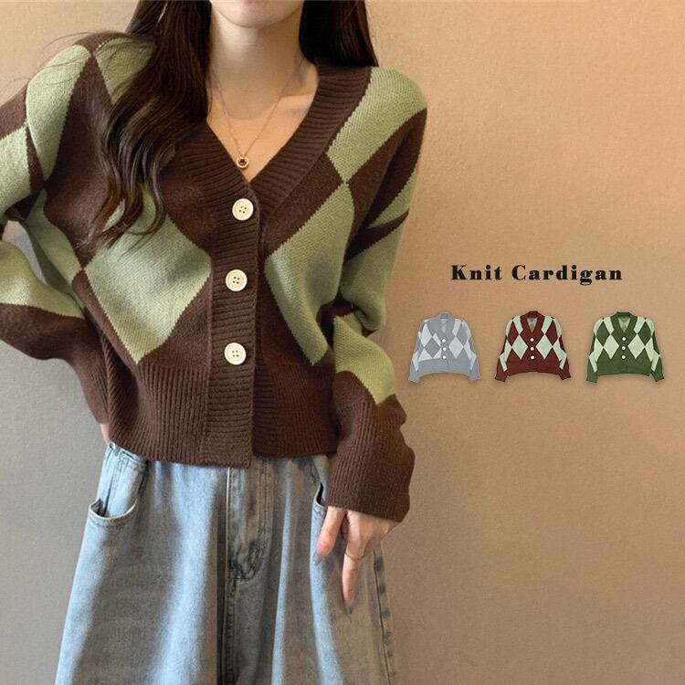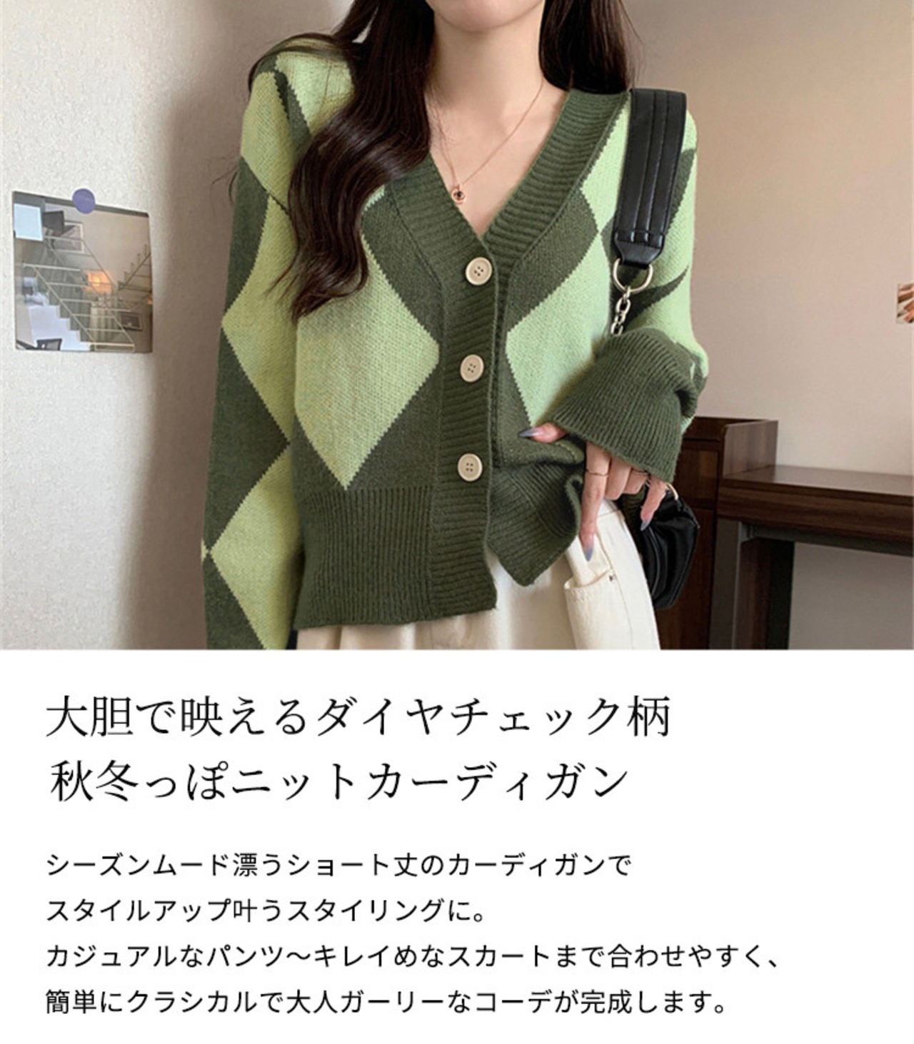 シーズンムード漂うショート丈のカーディガンでスタイルアップ叶うスタイリングに。