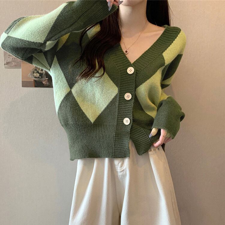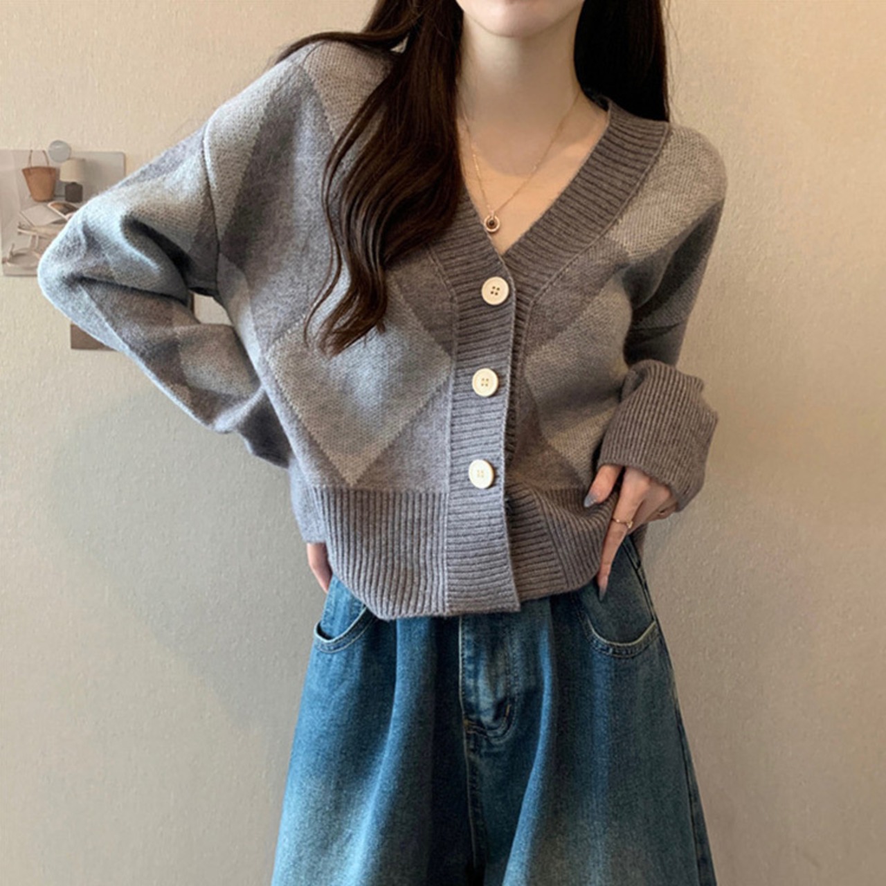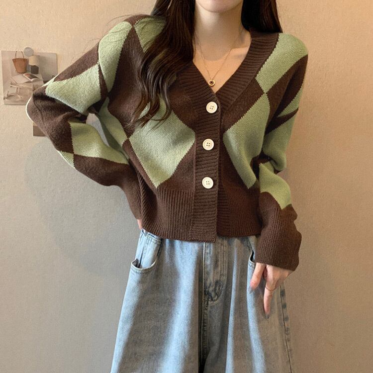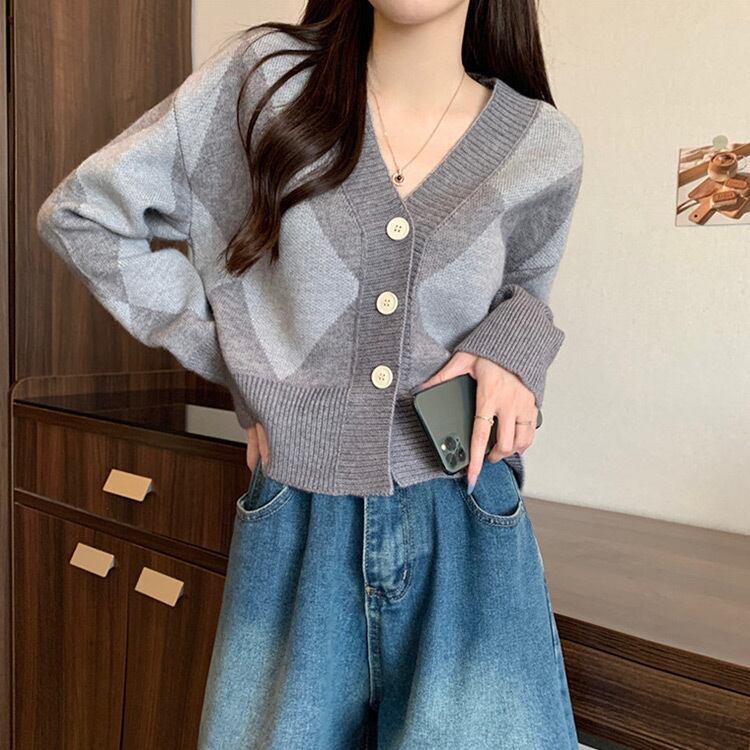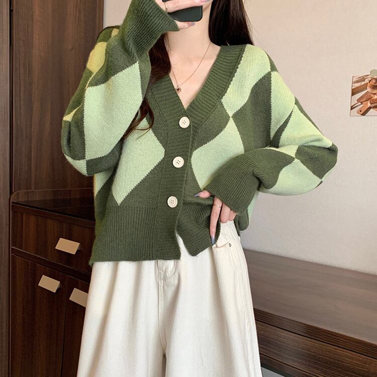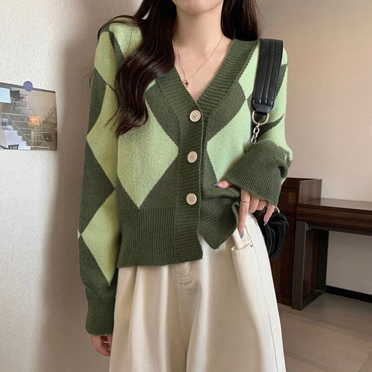 シーズンムード漂うショート丈のカーディガンでスタイルアップ叶うスタイリングに。