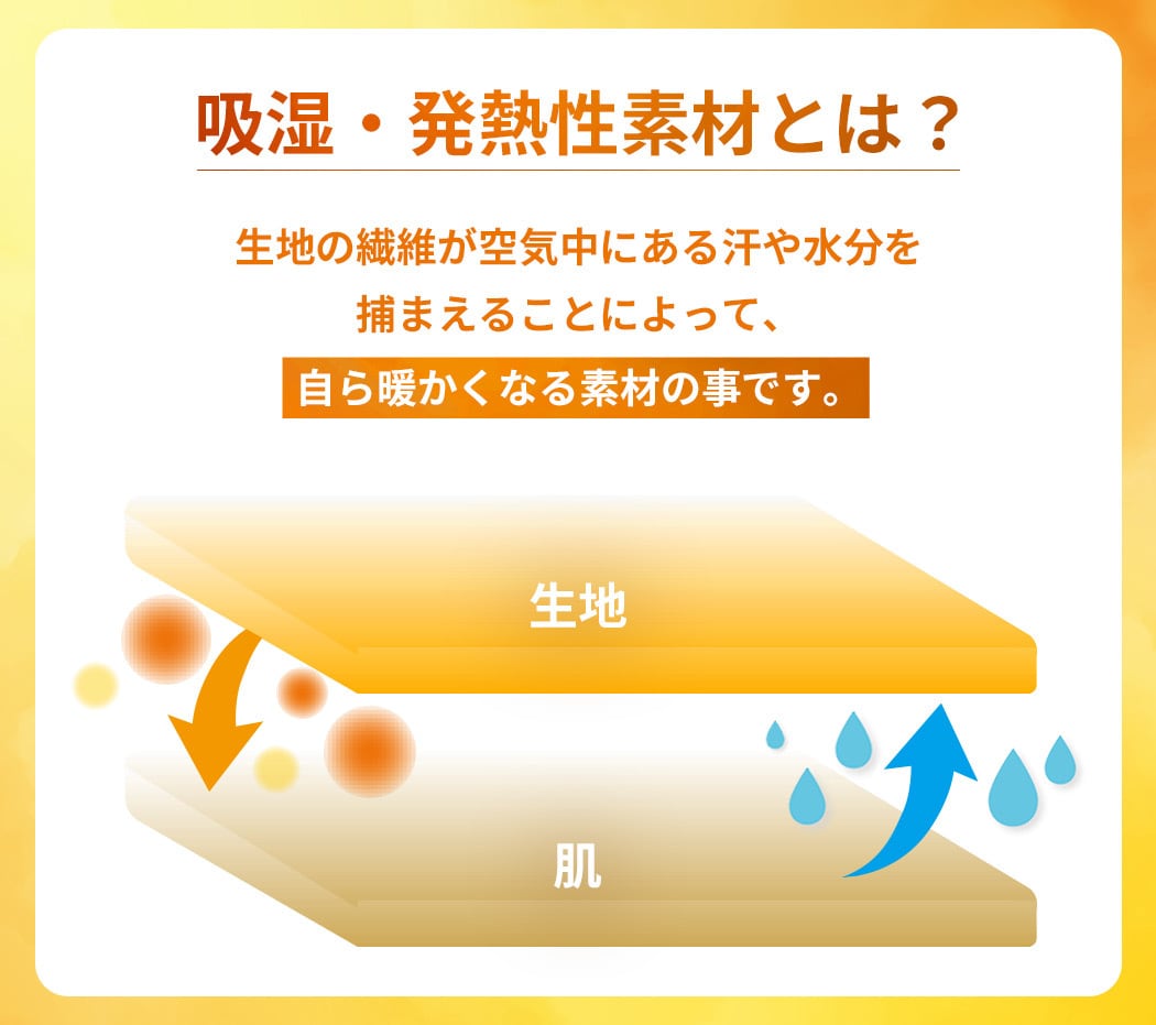 生地の繊維が空気中にある汗や水分を捕まえることによって、自ら暖かくなる素材のことです。