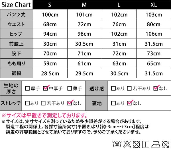 製造工程の関係上、各採寸箇所実寸(平置き)より【約-3cm~+3cm】程度は