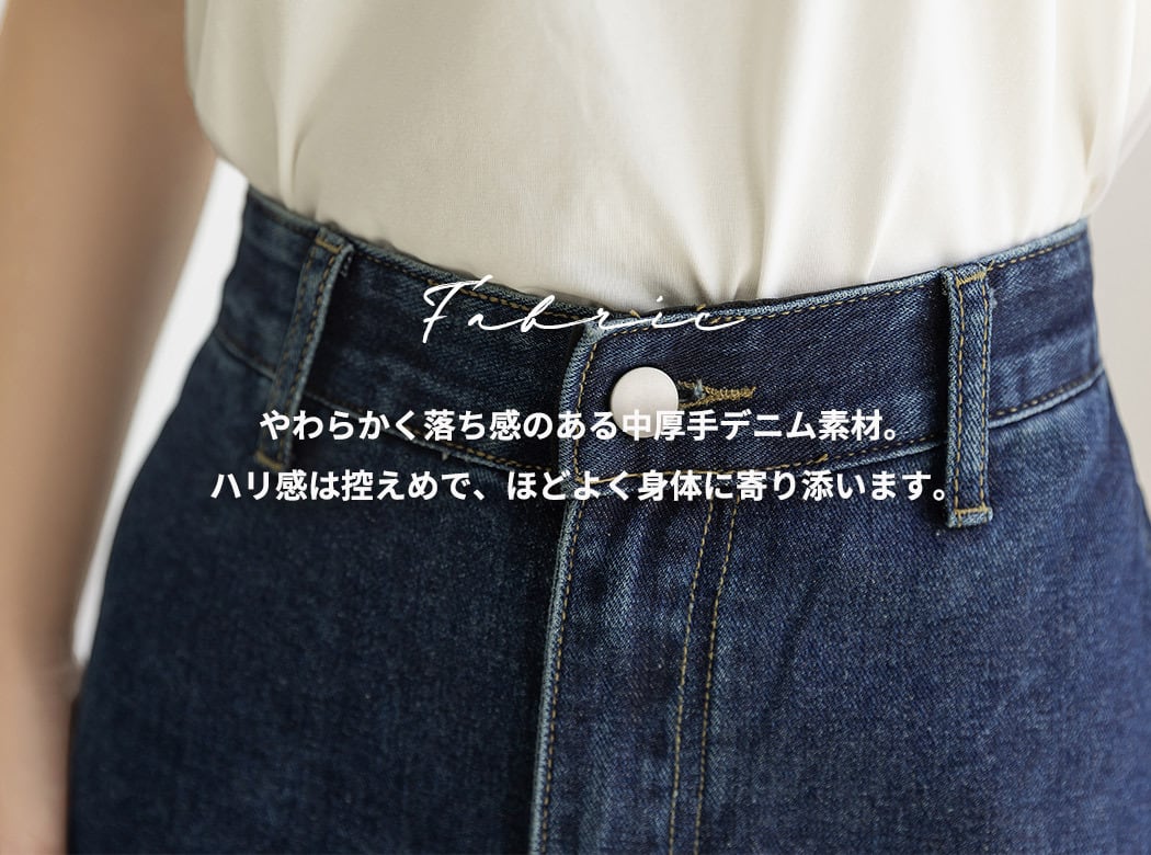 やわらかく落ち感のある中厚手デニム素材。